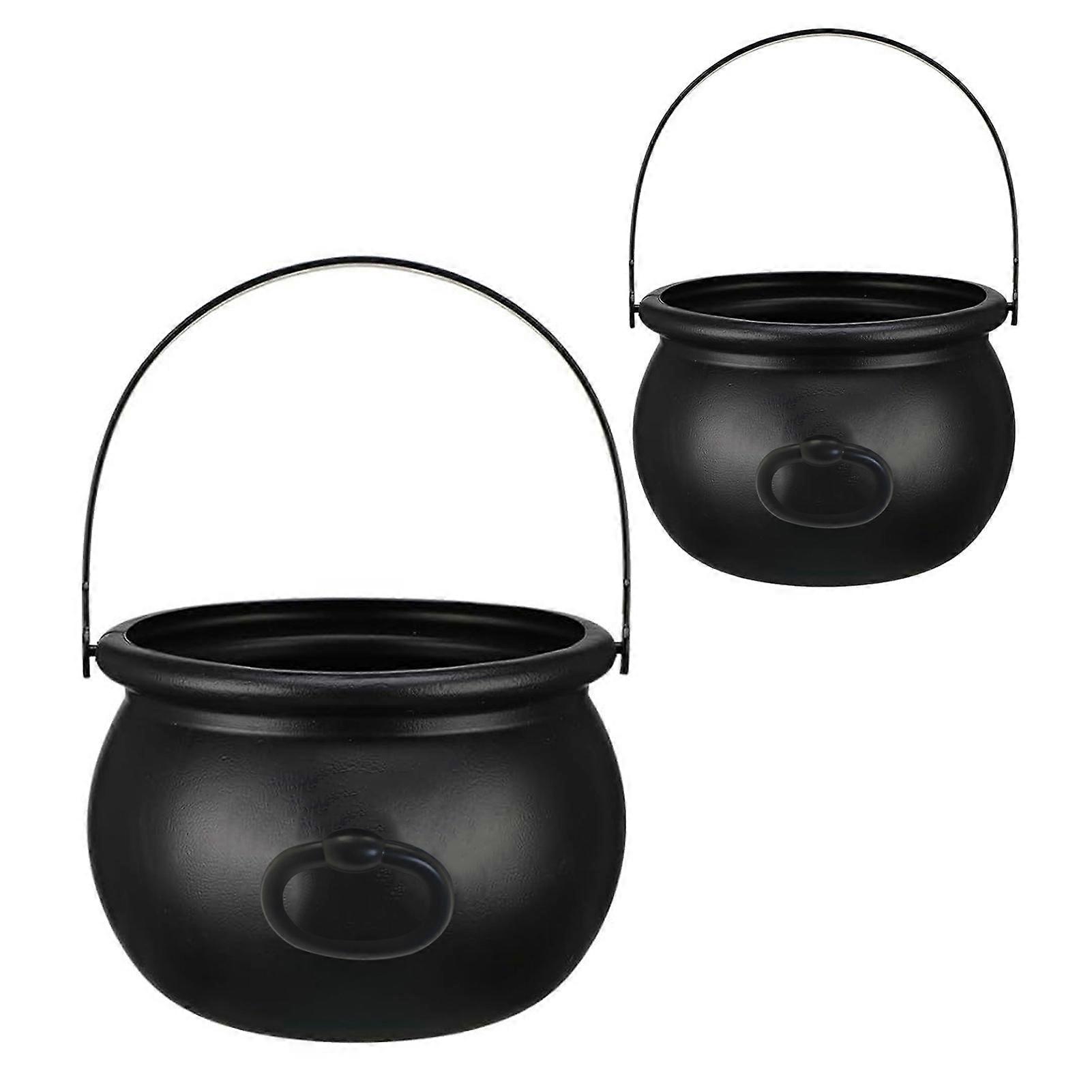 2Pcs Halloween Candy Bucket Large Witch Cauldron Black Plastic Kettle Halloween Pot Snack Container for Party Favors Cosplay Events