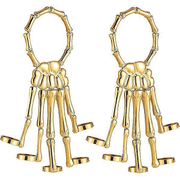 2pcs Halloween Skull Bracelet Skeleton Hand Ring Metal Bangle Skull Fingers Wristband Jewelry