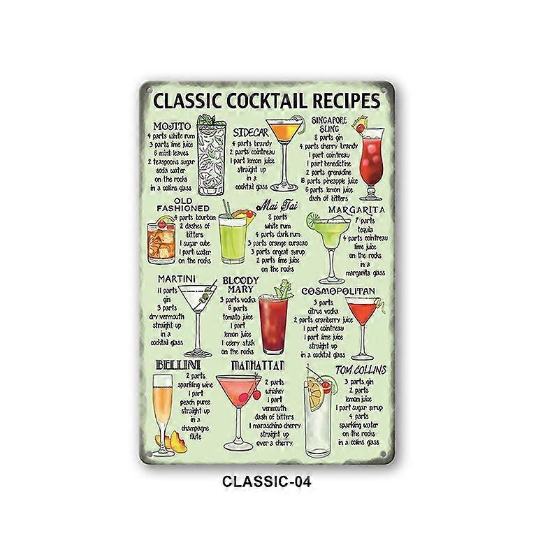 2 Pcs Vintage Bar Metal Sign (CLASSIC) Iron Classic Cocktail Recipe and Shot Menu Sign, Vintage Decor Durable Vintage Metal Poster for Mural Cafe Bar