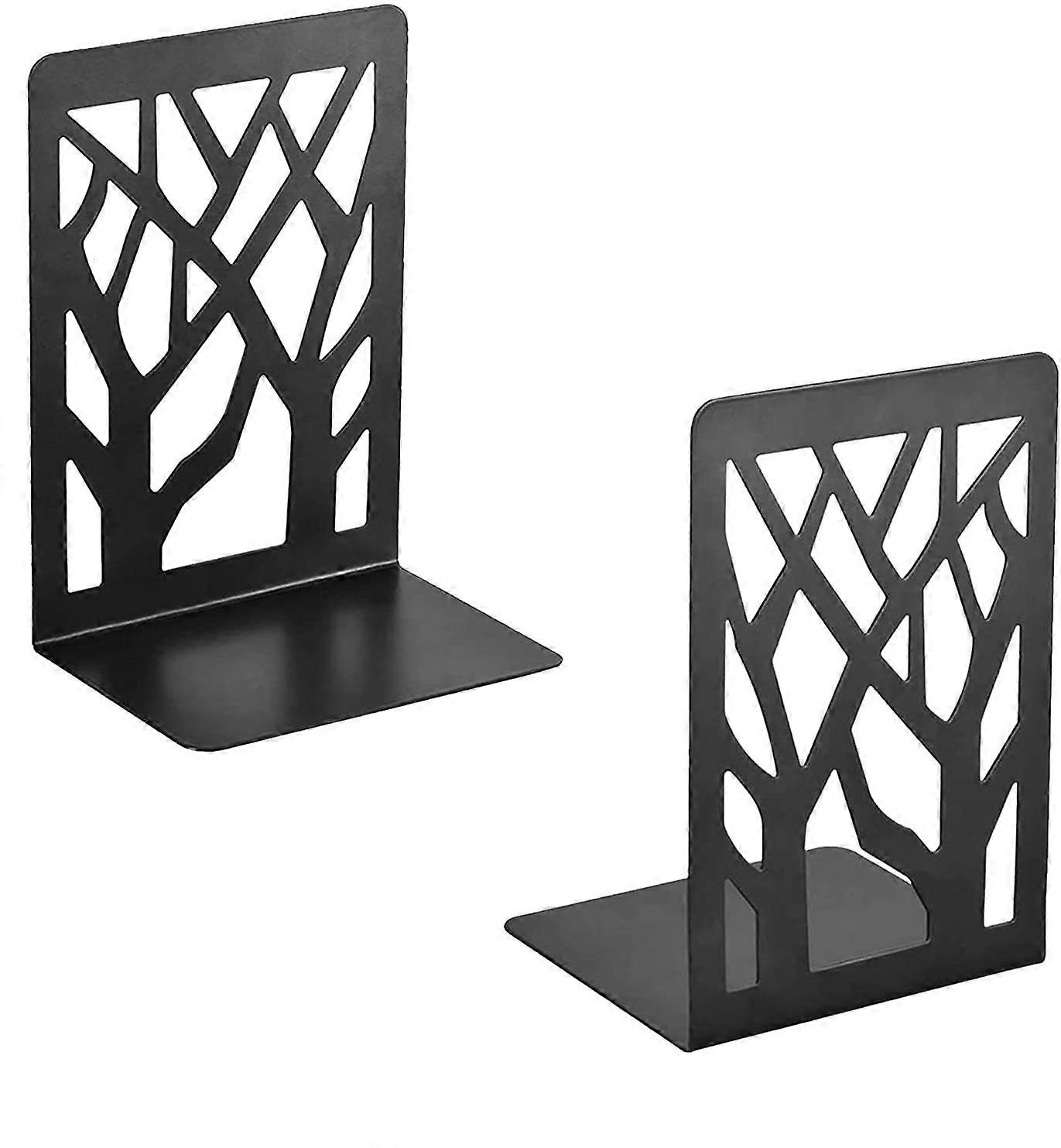 2Pcs Bookends, metal bookends, black bookends, non-slip book holders, metal shelves, bookshelves, children's shelvesTree