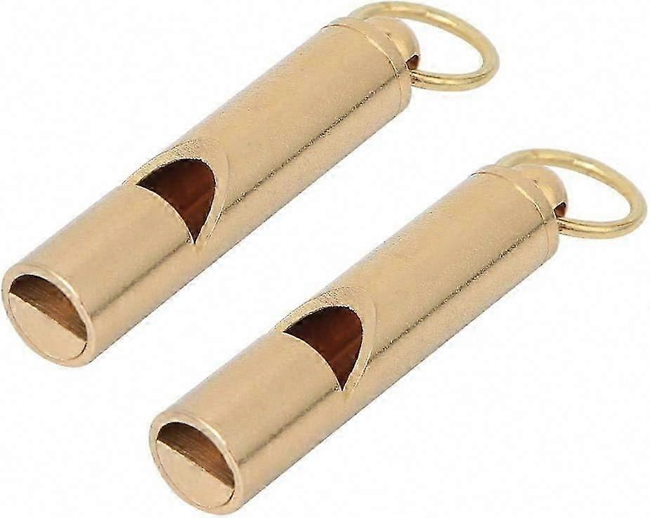 2Pcs Premium Handcraft Vintage Pure Brass Mini Emergency Survival Whistle Referee Key Chain Whistle for Camping Hiking Sports