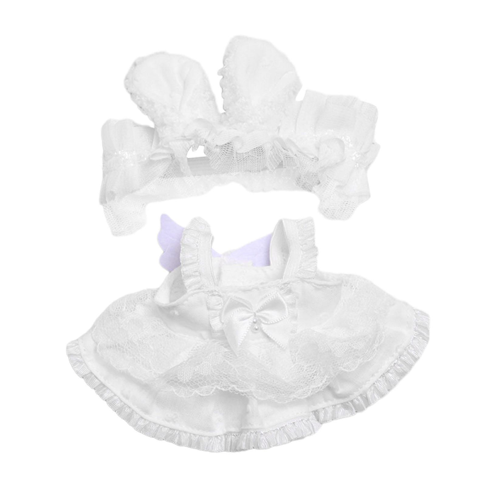 2Pcs Fashion Dolls Lace Dress and Rabbit Ear Headband Costume for 17cm Dolls