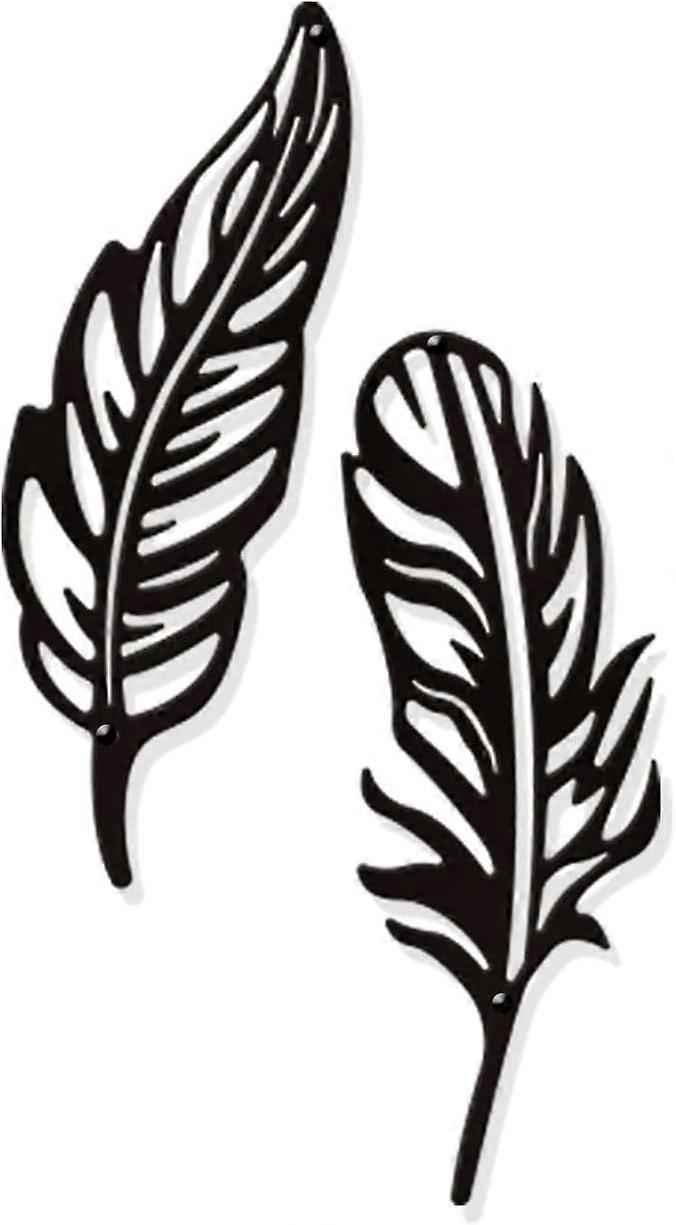 2 Pcs Feather Metal Wall Art Decor Black Wall Hanging Decor Silhouette Wall Art for Home Bedroom Living Room Bathroom Kitchen Office Hotel Wall Decora