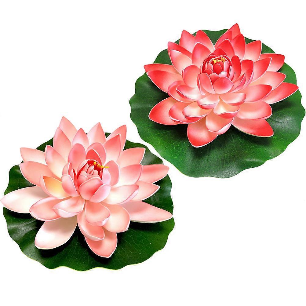 2pcs Floating Lotus Flower Decor for Garden Aquarium Realistic Simulation Flowers Home Party Pool Decoration Pink