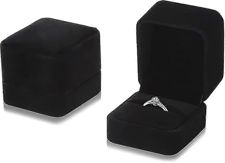 2 Pcs Velvet Jewelry Box, Ring Box, Earring Box, Pendant Jewelry Storage Box For Wedding, Engagement And Valentine's Day Black