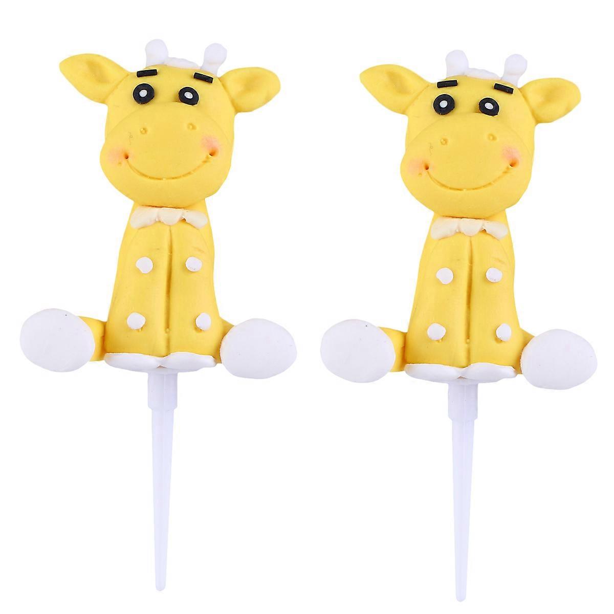 2Pcs Polymer Clay Giraffe Shape Cupcake Adornment Birthday Cake Ornaments Decor