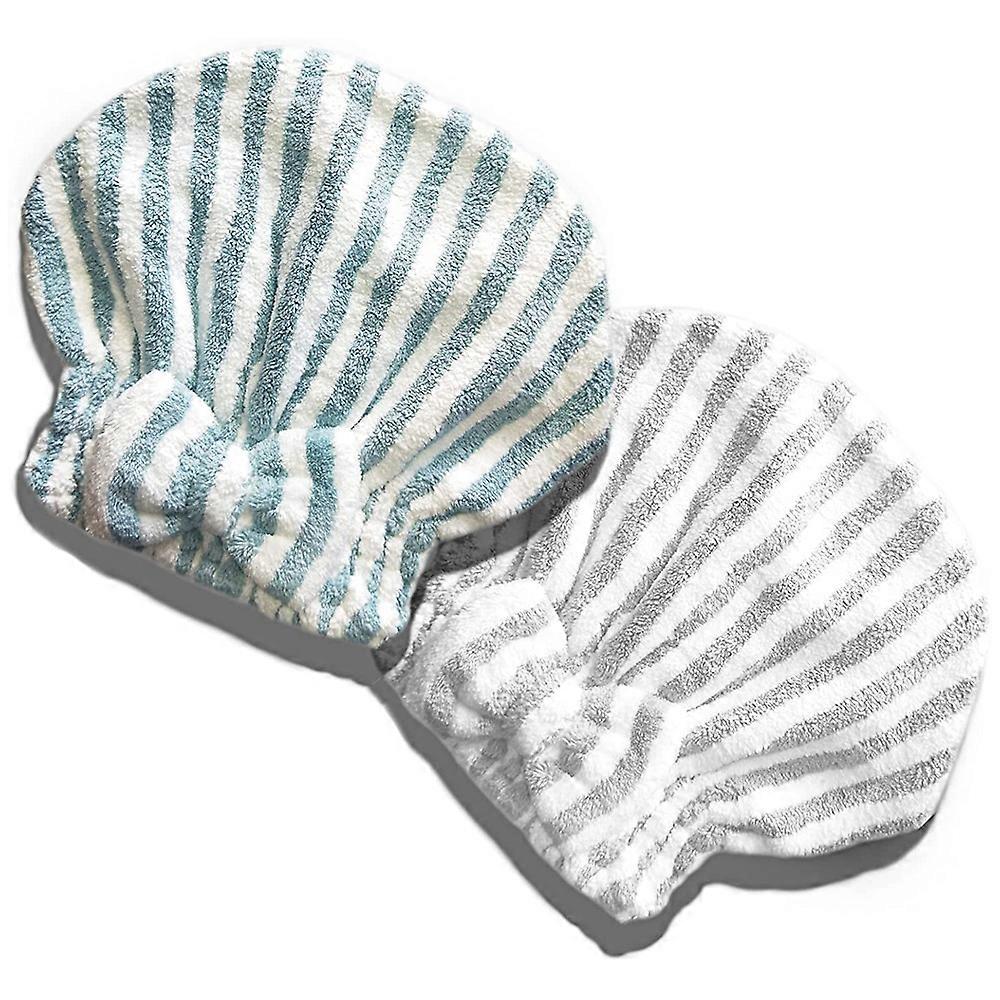 2 Pcs Microfiber Hair Towel Cap,Soft Absorbent Quick Drying Cap for Curly Thick Hair