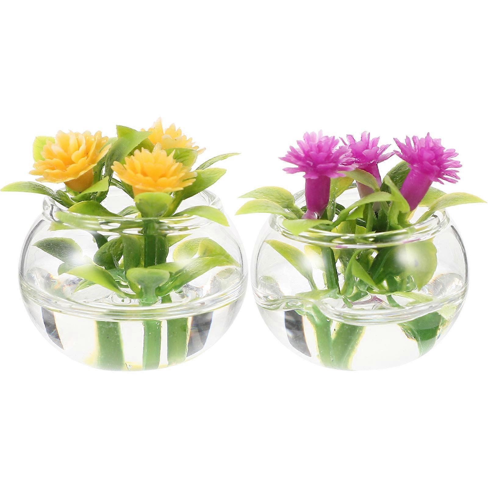 2pcs Miniature Dollhouse Bonsai Plants Small Mini Potted Succulent Models for Doll House Decor Realistic Miniature Garden Accessories Tiny Plant