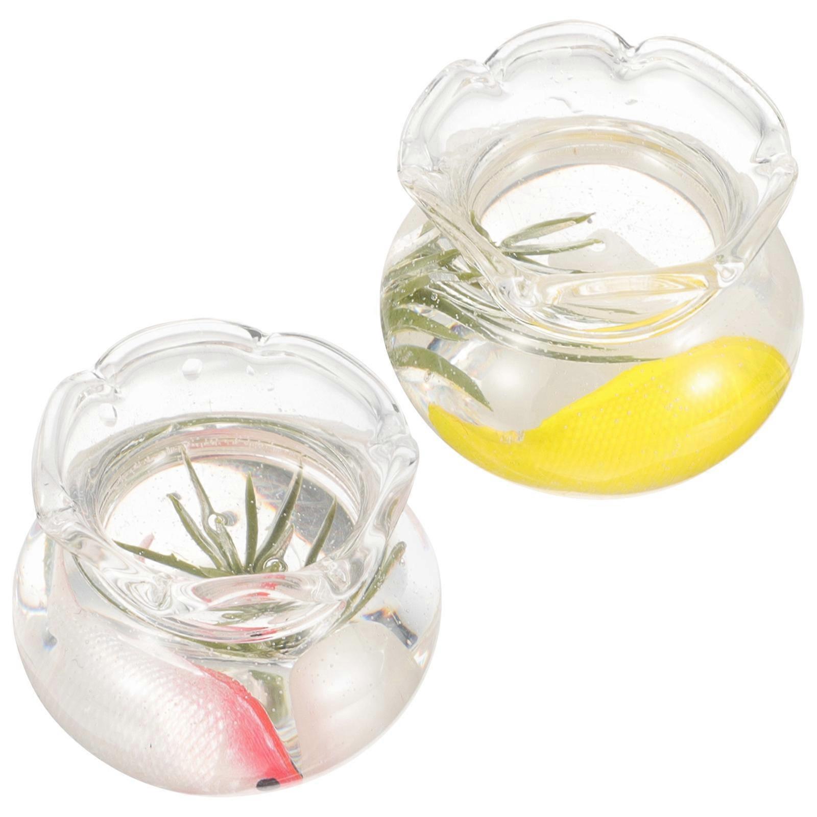 2pcs Mini Fish Bowl Decor, Random Style Carp Tank for Dollhouse & Miniature Landscaping Home Decoration