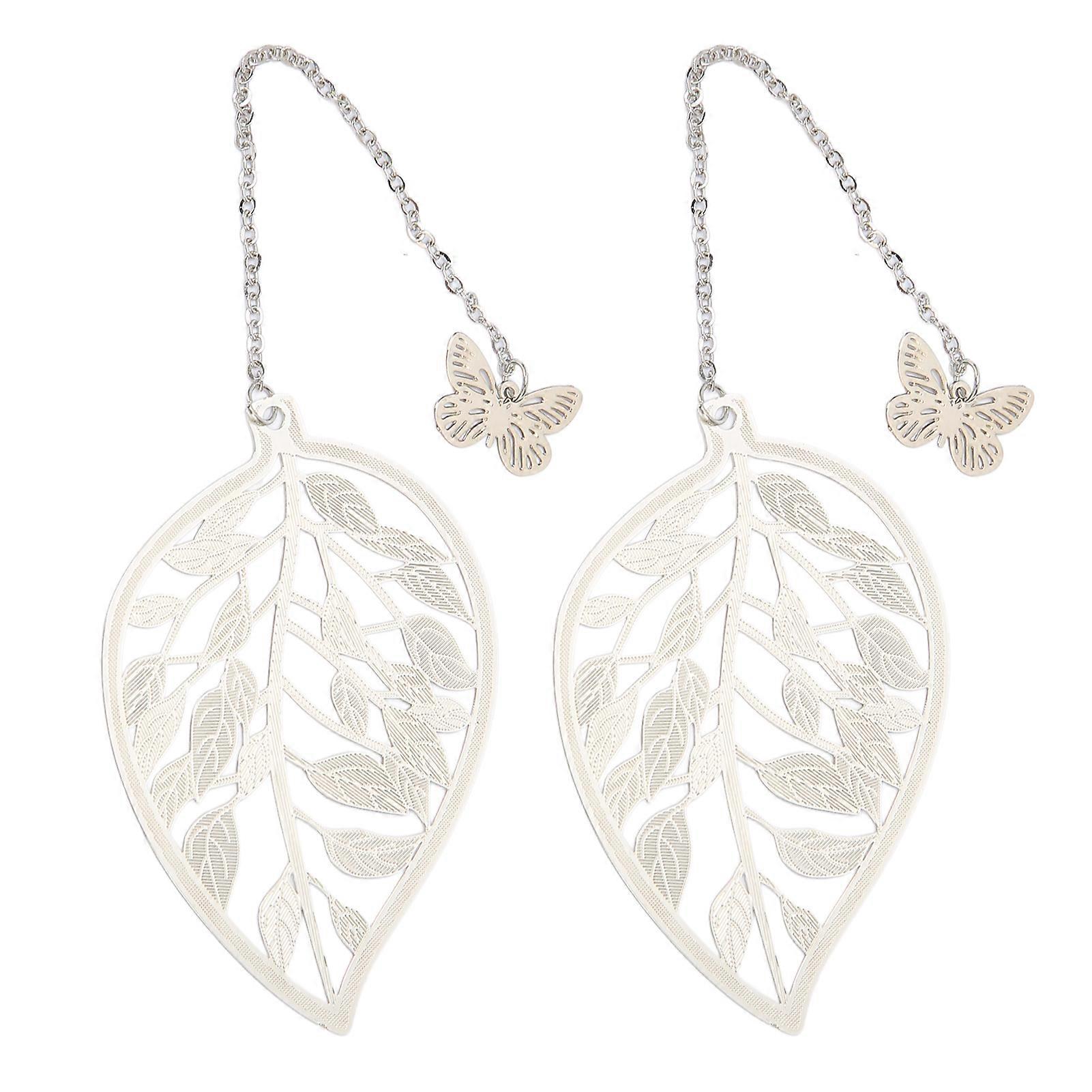 2Pcs Metal Bookmarks Retro Leaf Style Silver Color Elegant Light Slim Hollow Bookmark for Office School Family