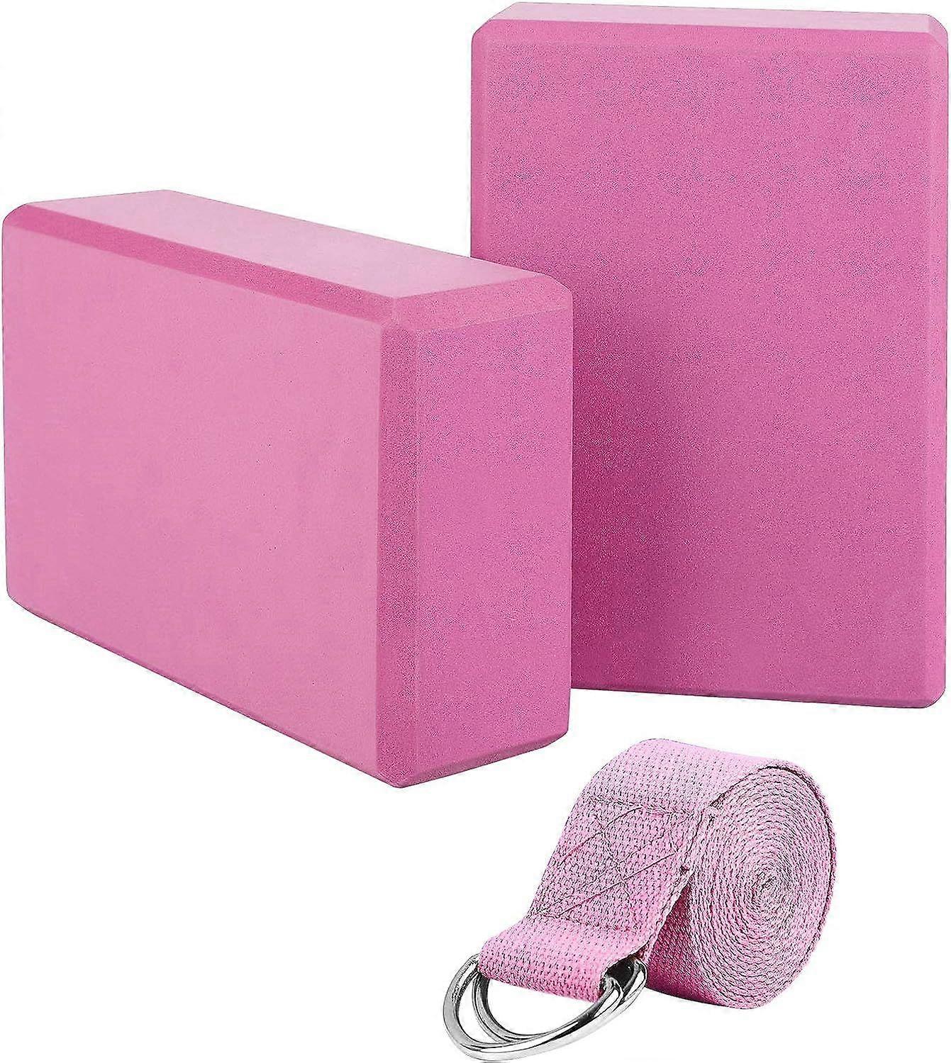 2pcs Yoga Blocks and Strap Set High Density Foam Yoga Bricks Support Deepen for Yoga Pilates