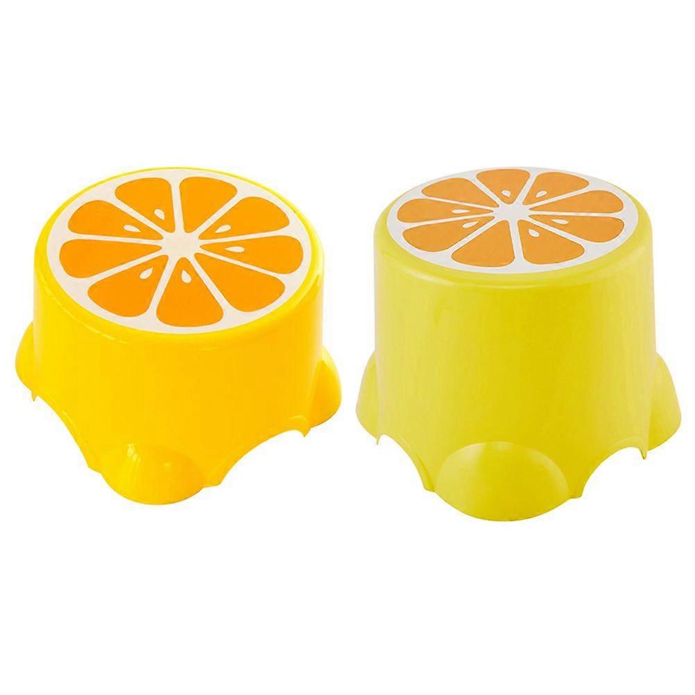 2 Pcs Lemon Pattern Stool Children Cartoon Plastic Stool Adorable Color Bright Footstool Small Bench for Home Kindergarten Elementary School (1xBig Si