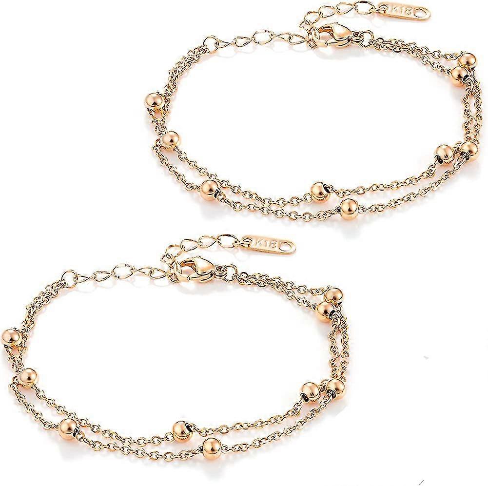 2pcs Rose Gold/silver Women's Ankletbracelet Anklet Double Chain Anklet Gift