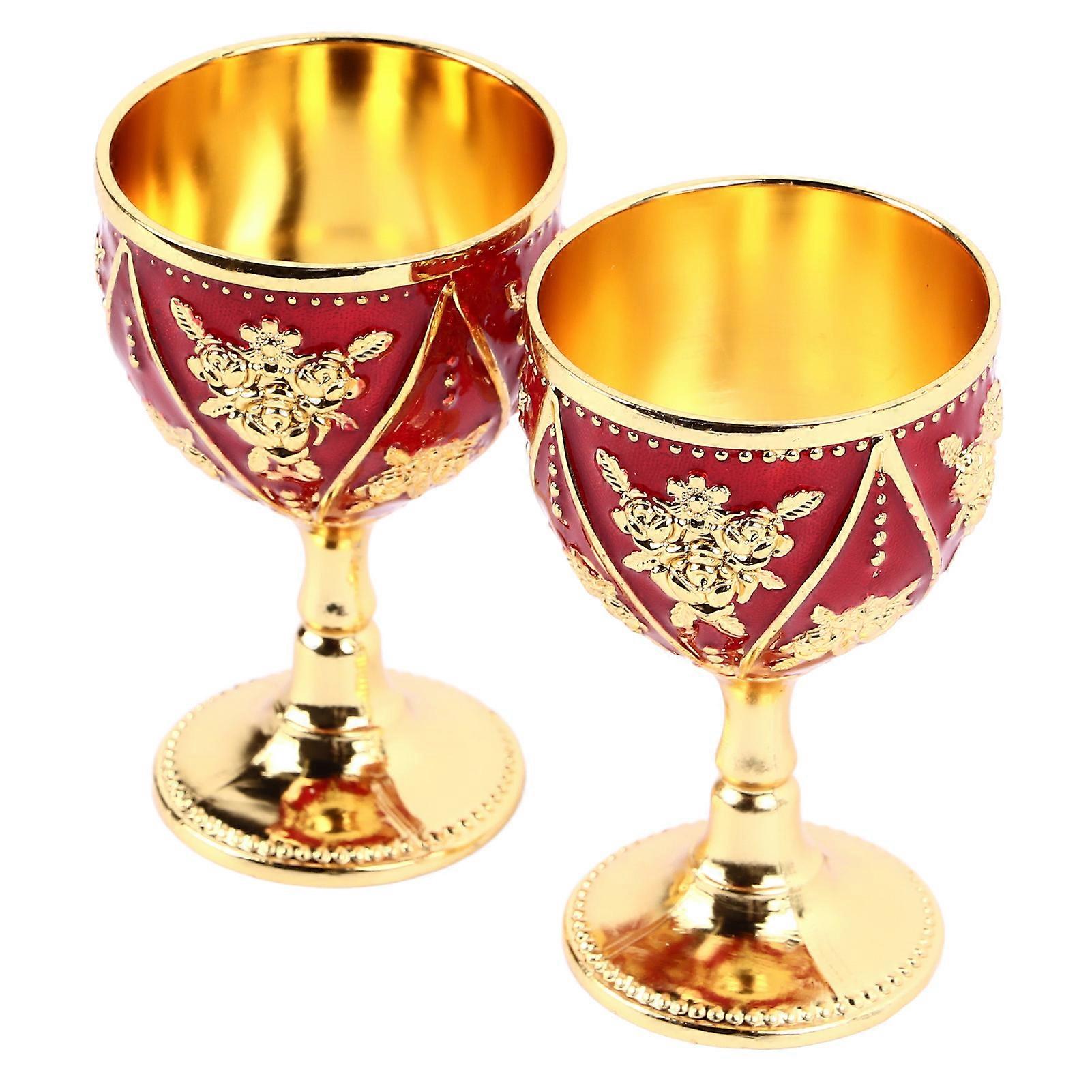 2 Pcs Wine Glass Exquisite 3D Relief Rose Flower Pattern Decorative Vintage Wineglass Gold Red