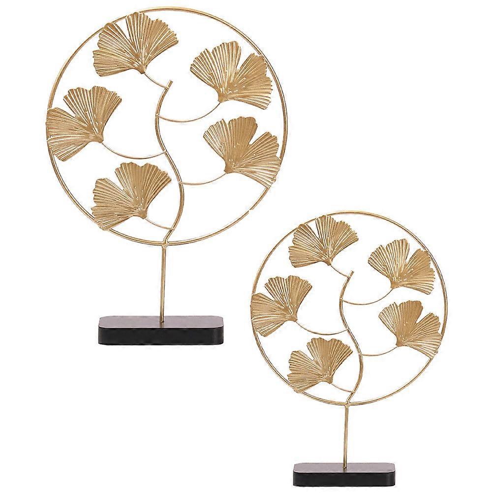 2 Pcs Round Iron Wrought Leaves Decor Perfect For Living Room Or Office Decor With Elegant Characteristics In Golden