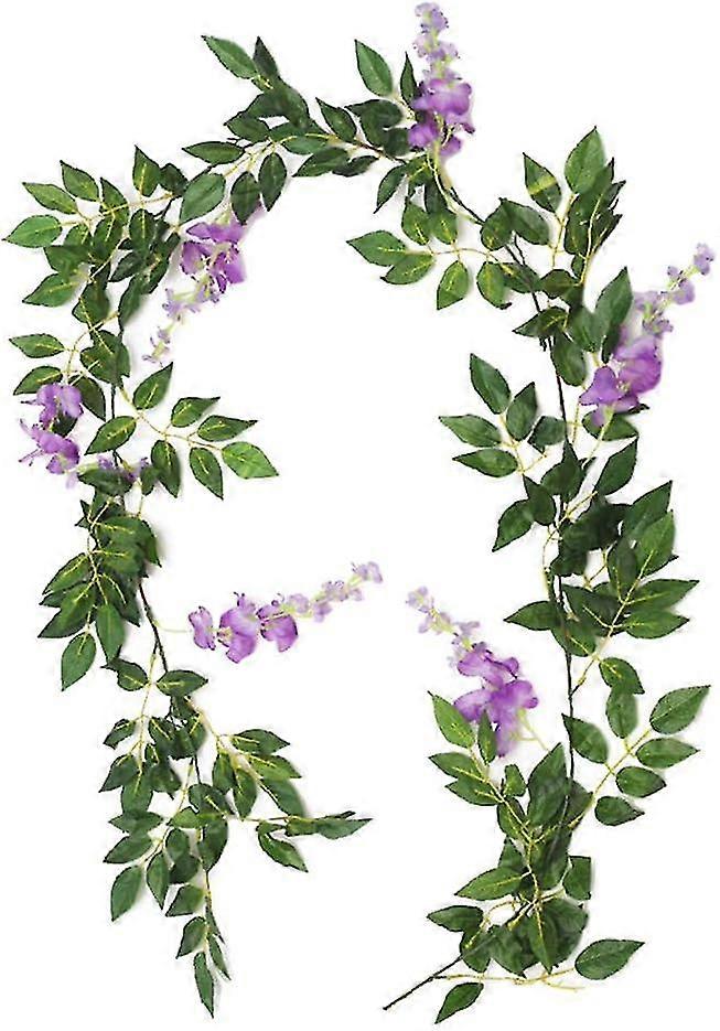2 Pcs Artificial Wisteria Vine, Artificial Flowers Vine Fake Silk Flowers Hanging Vines Plants Faux Garlands for Garden Outdoor Wall Greenery Jungle Party Wedding Arch Floral Decoration