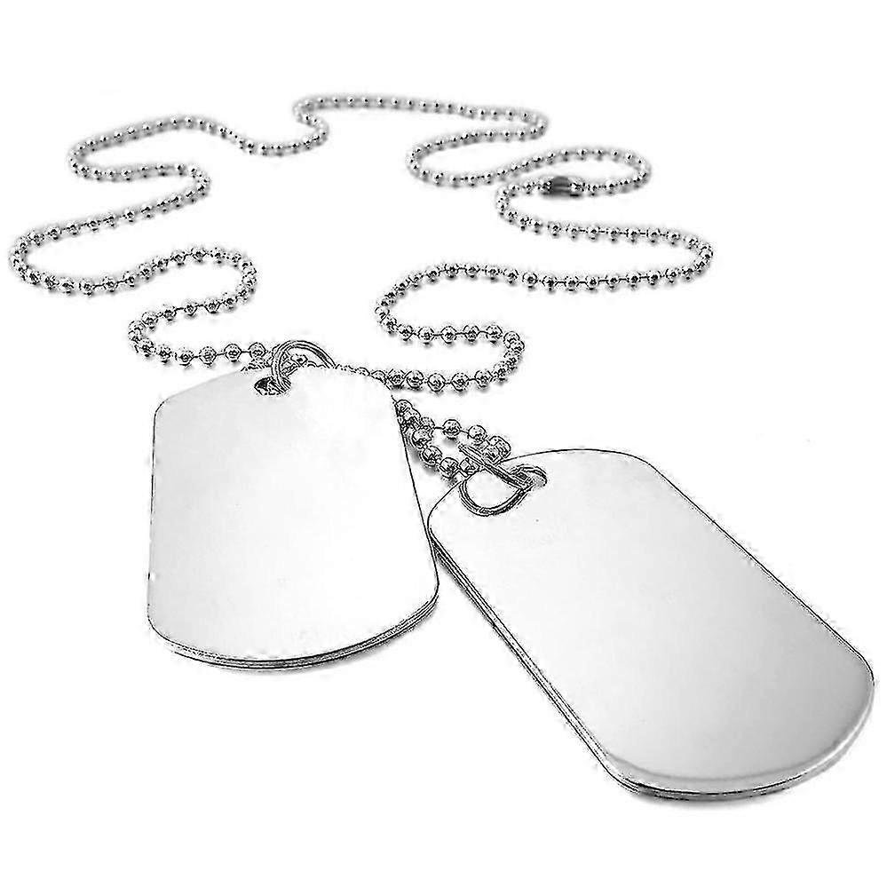 2 Pcs Alloy Pendant Necklace Pendant Silver Double Dog Tag Plate Biker Chain Necklace Man, Woman