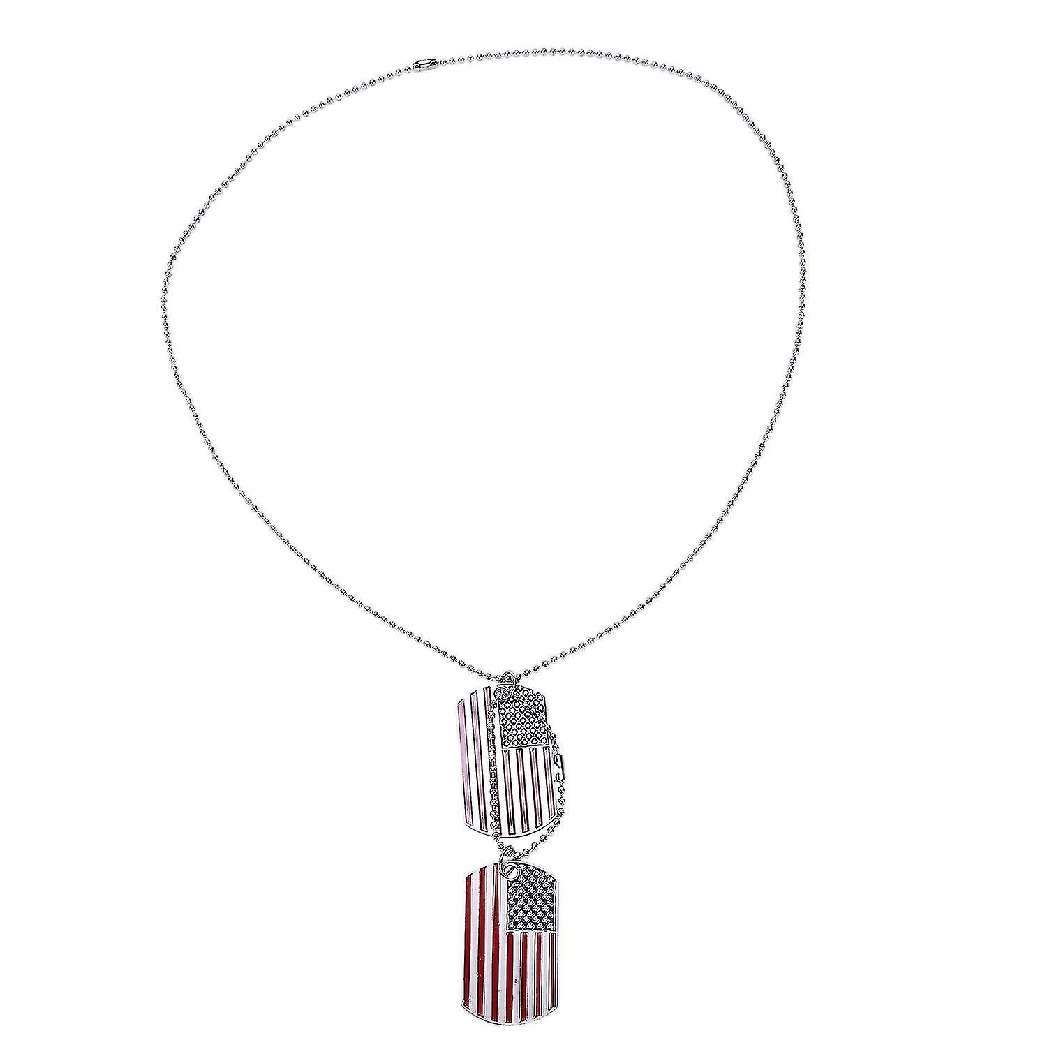 2 Pcs Alloy Pendant Necklace Pendant Red And White Stripes Usa American Flag Double Dog Tag Plate 2