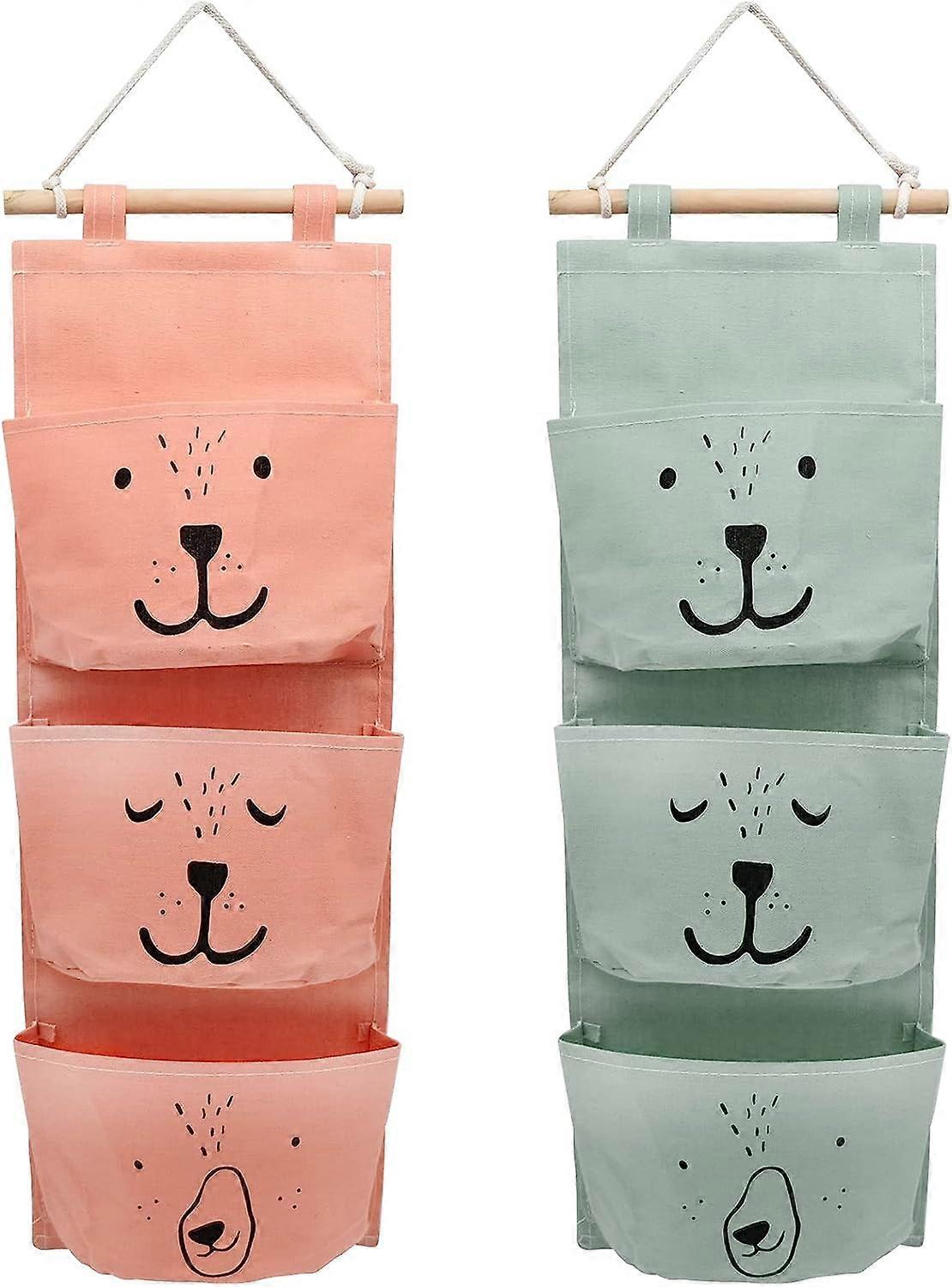 2 Pcs Hanging Storage Bag, Wall Organizer Bag with 3 Pockets, Linen Fabric Waterproof Storage Pouch for Bedroom Bathroom Kitchen Storage Decoration (G