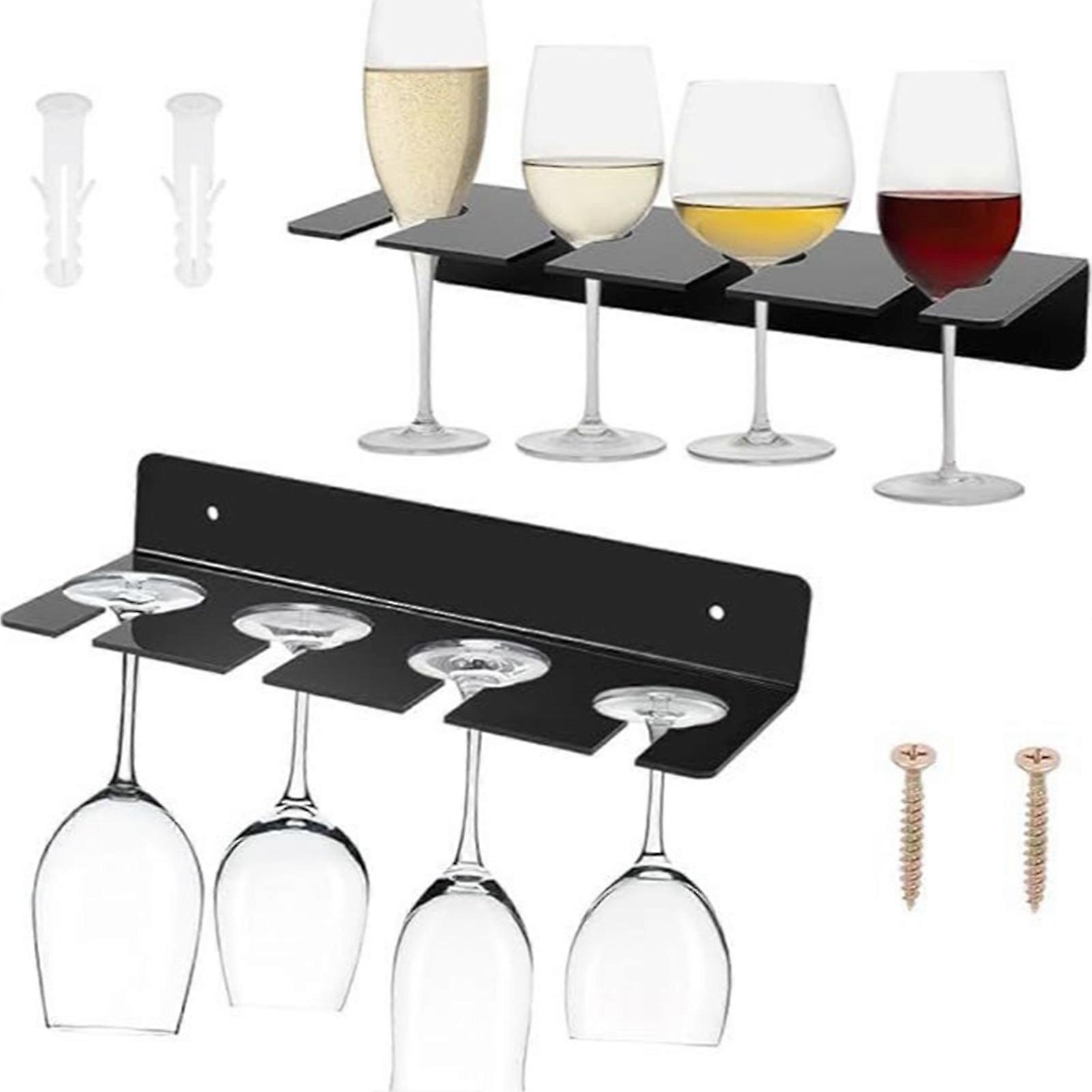 2Pcs Wall Mounted Wine Glass Holder Acrylic L-Shaped Stemware Rack Crystal Clear Acrylic Easy Install Home Kitchen Restaurant Bar Organizer