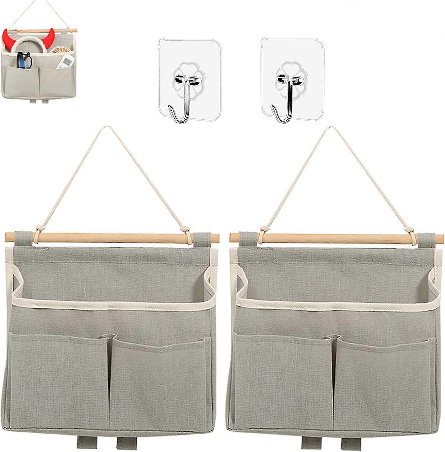 2Pcs Wall Hanging Storage Caddy BagStorage Bags Wall Mount Hangable OrganizerFile Magazine Waterproof Linen Cotton Fabric Living Room Bedroom (Grey)