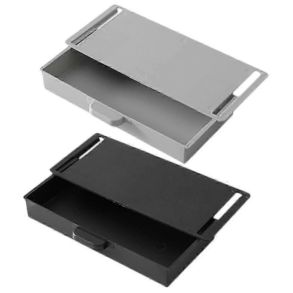 Description This practicalUnder DeskStorage Box can store your cosmetics, skin care products and other items.Under Desk Organizeris made of durable materials, modern and simple in design, and can provide you with a clean and tidy desk. It can keep your belongings in order, with this storage box, your home will become tidy. Features -Color: Black, Grey -Material:ABS -Size:23.50X10.50X3.50cm/9.24X4.13X1.38in -It can be easily and firmly installed on clean surfaces without falling off.You can choose the right location. -Hanging under the hidden drawer, large capacity, can store a lot of desktopsundries, make more desktop space. -Made of ABS to ensurethisis wear resistant and verystrong enough for everyday use. Absolutely safety. -This hidden drawer holds lots of office supplies such as pencils, chargers, notebooks, notes, tissues and more. -You can also install a drawer box in your living room to store your remote controller, or install it in your dresser to store lipstick jewelry or makeup.Package list: 2 x Under Desk Drawers with Adhesive Stickers