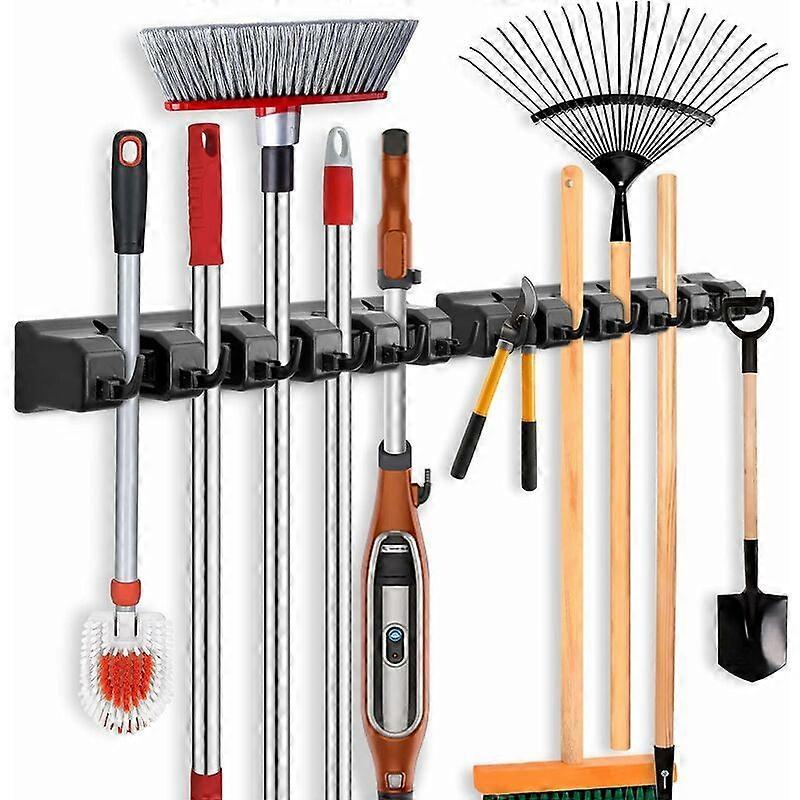2Pcs Multifunctional Wall Broom Holder, Storage Hanger Holder for Your Kitchen (5 Slots and 6 Hooks), Garage, Laundry Room