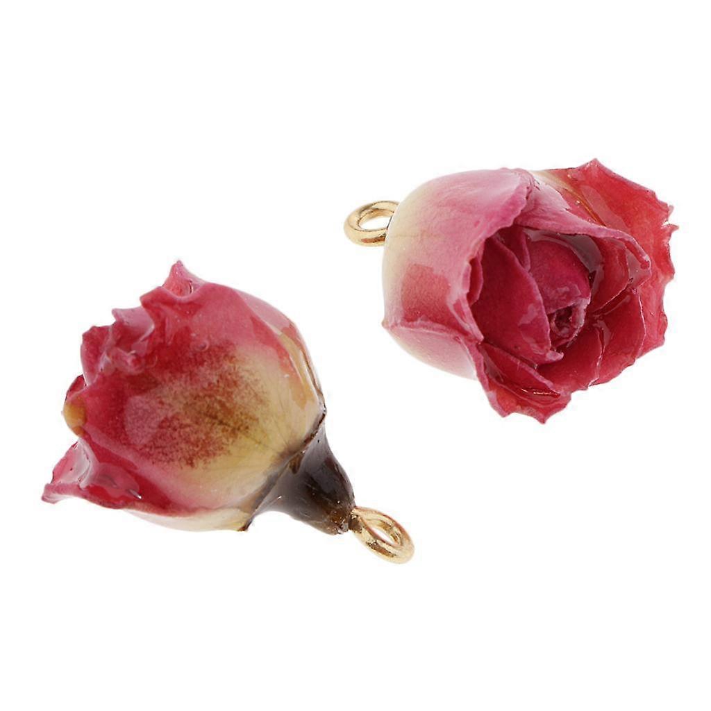 2Pcs Natural Dried Rose Flower Charms with Liquid Resin Covered Epoxy Resin