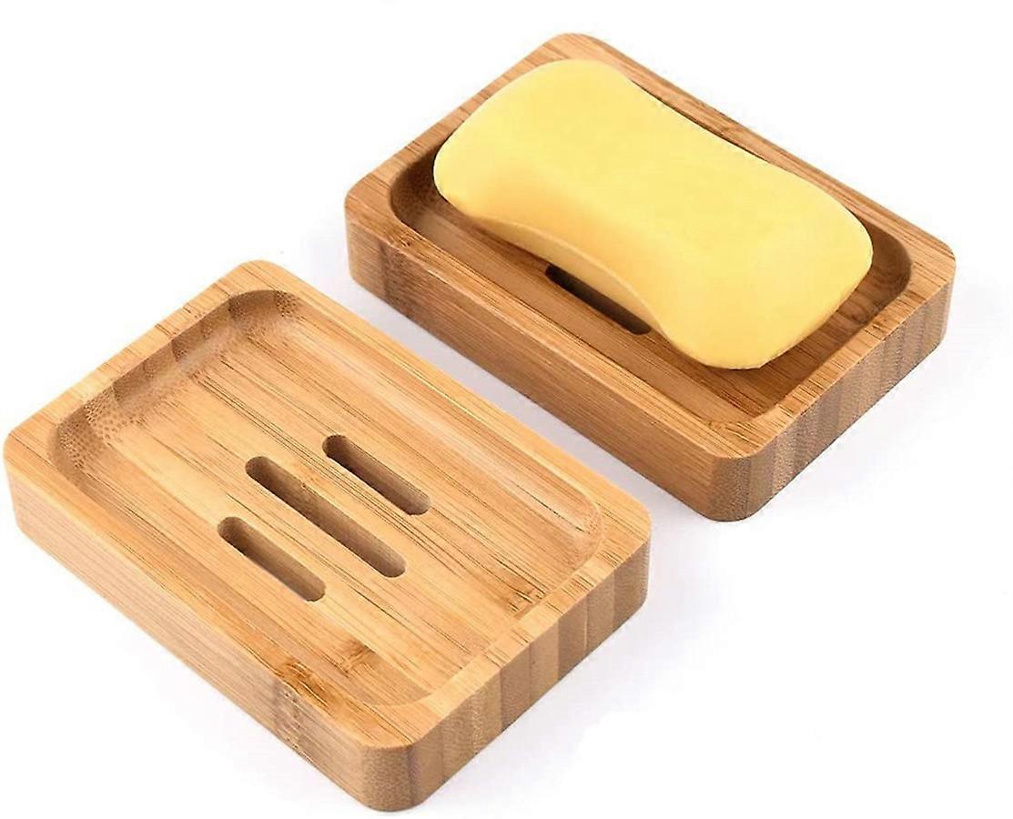 2 Pcs Natural Wood Bamboo Soap Dish Wooden Shower Handmade Soap Box (A-5-F6)