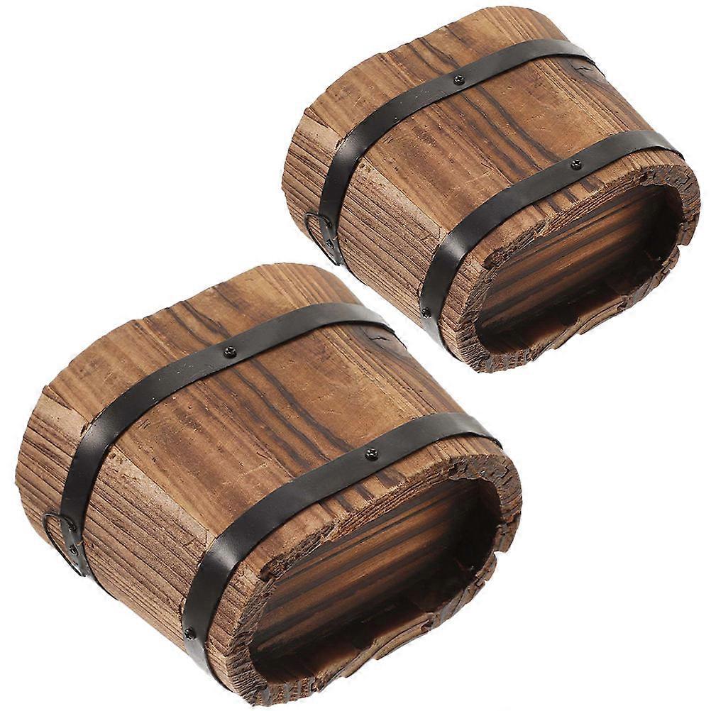 2pcs Small Wooden Planter Box for Home Decoration Brown Desktop Flower Pot 4.7x3.1x2.6in