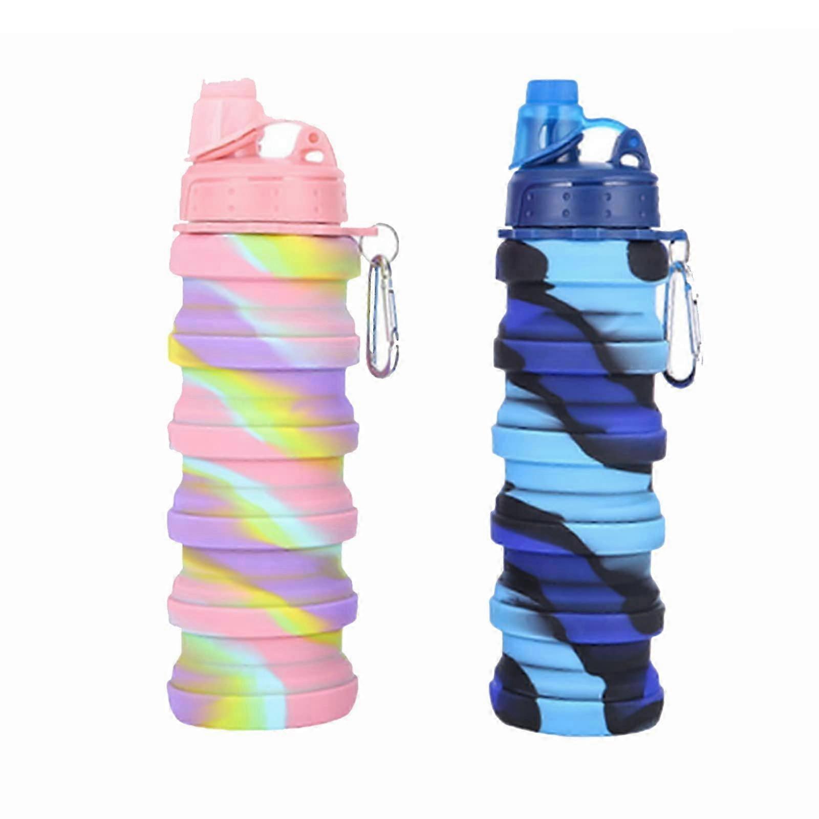 2Pcs Collapsible BPA-Free Silicone Water Bottle, Leak-Proof for Sports & Outdoor