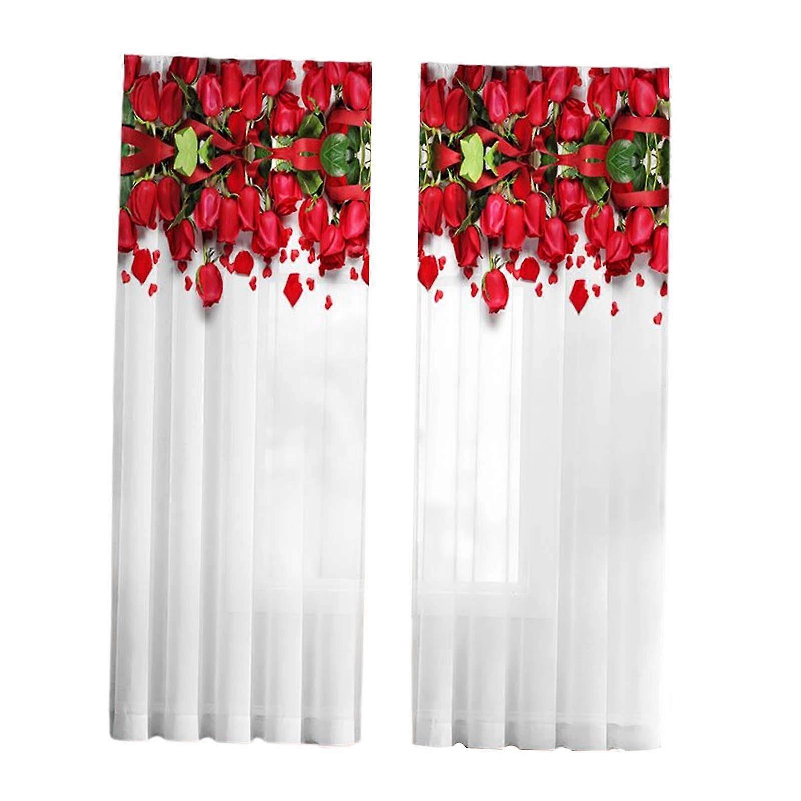 2Pcs Spring Flower Curtains , Rod Pocket Window Curtain Drapes for Bedroom