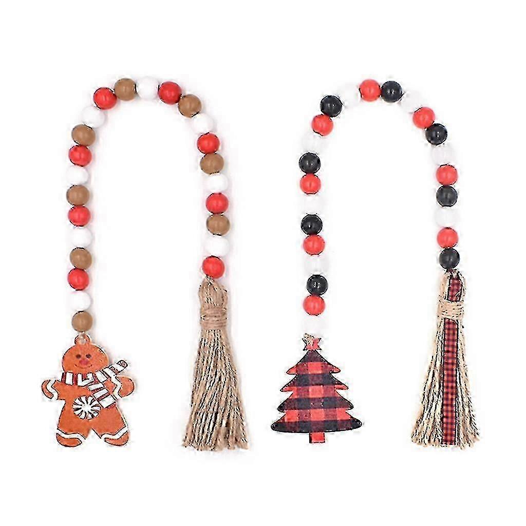 2Pcs Wooden Bead Christmas Garland with Tassel Farmhouse Decor Xmas Beads