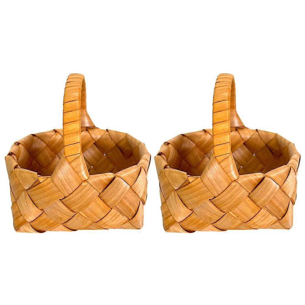 2pcs Wood Flower Girl Basket Portable Gift Candy Flower Basket