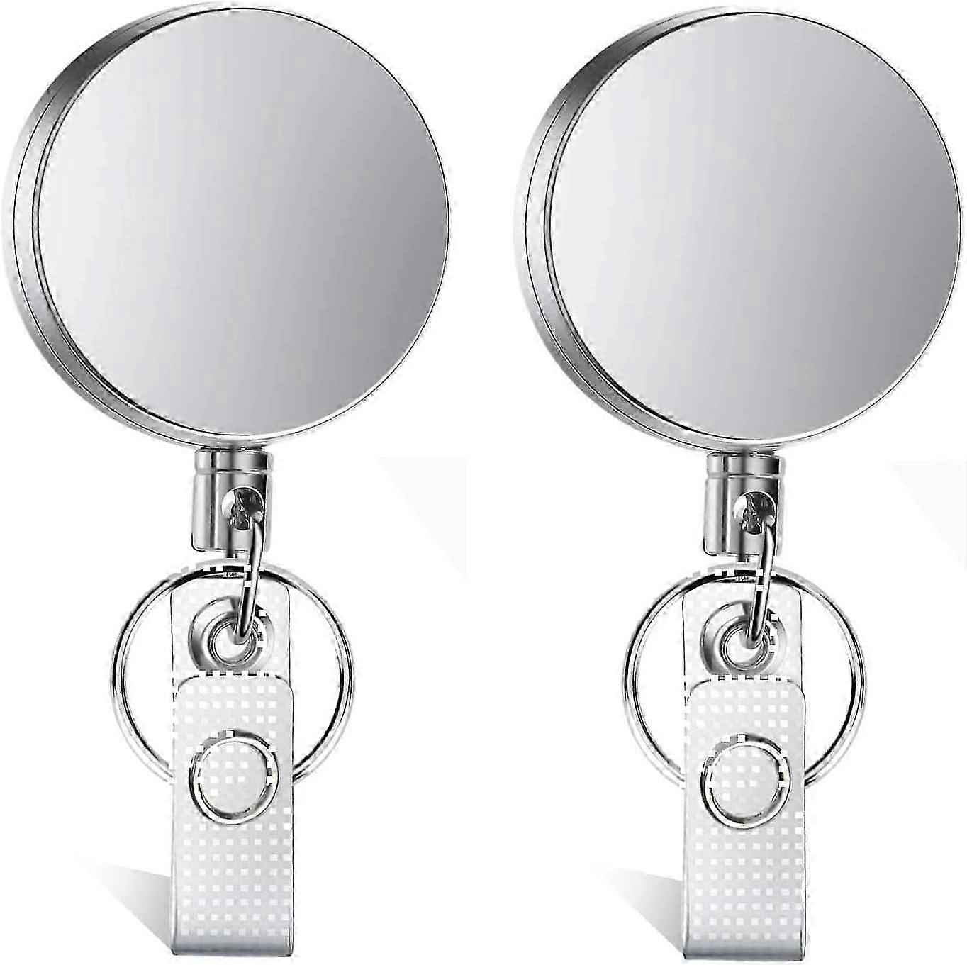2Pcs Retractable Steel Cable Keychain, Badge Holder & Keyring - Metal