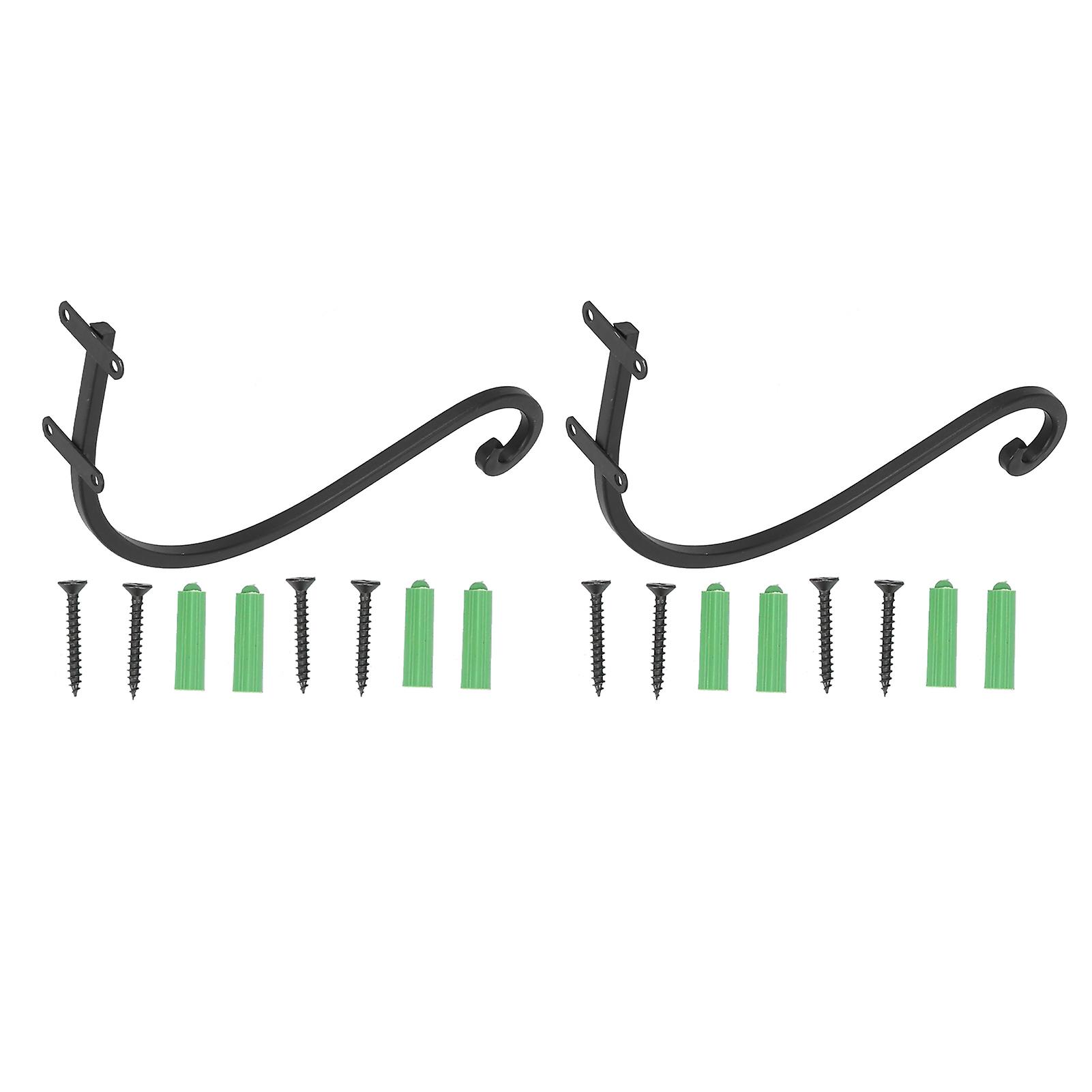 2Pcs Plant Hook Retro Black Stable Steel Hanging Plant Bracket for Outdoor Patio Garden
