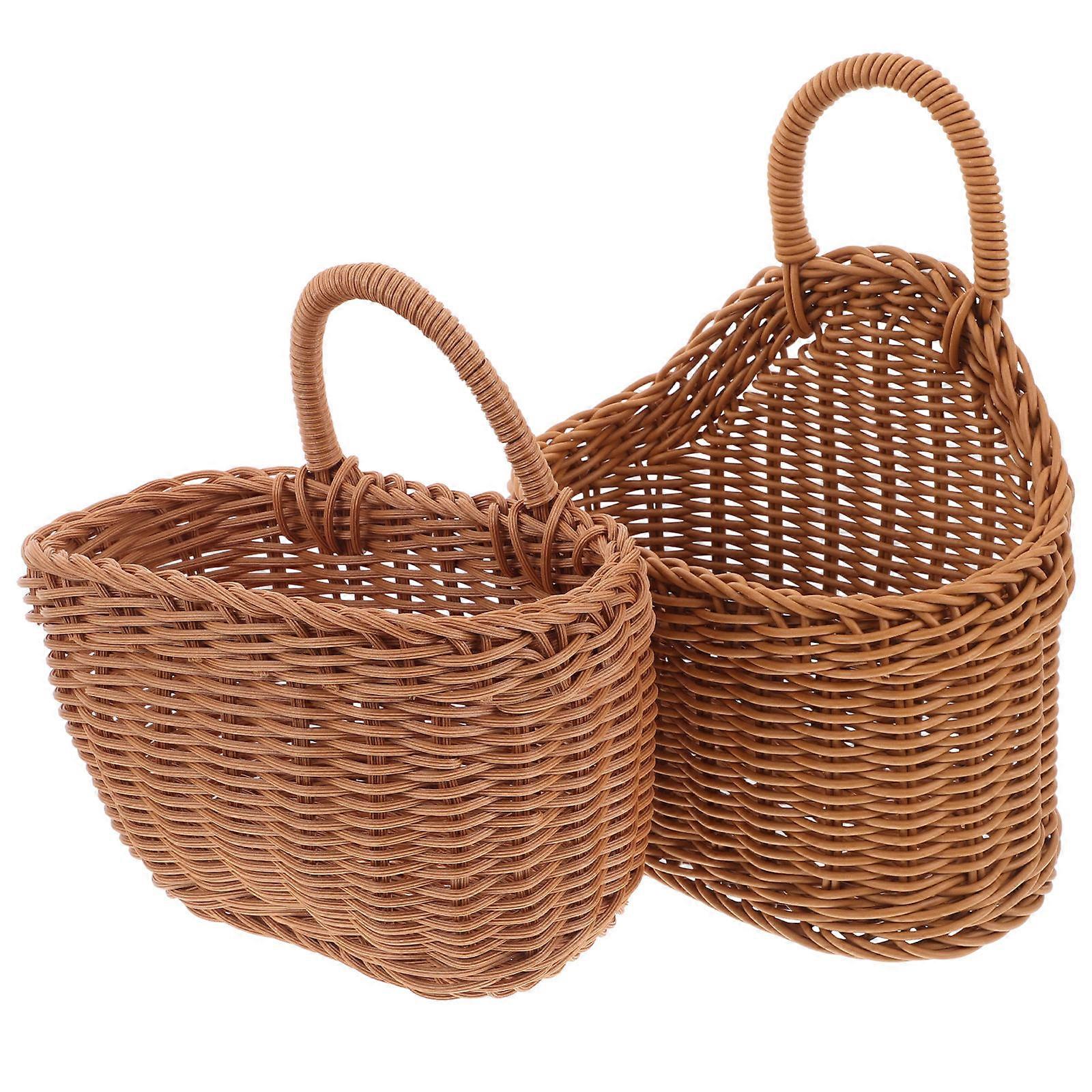 2pcs Imitation Rattan Storage Basket Small Wall Hanging Baskets Handheld Flower Basket for Kitchen