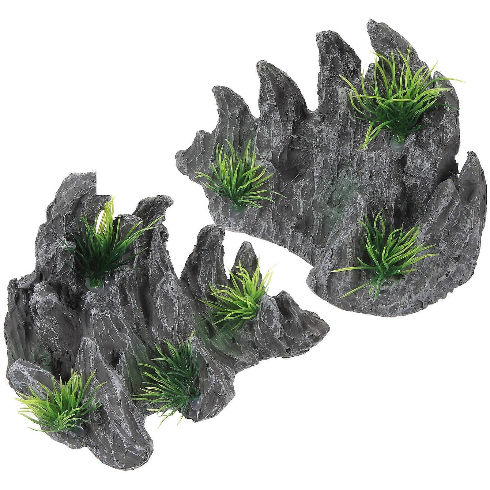 2pcs Fish Tank Decor Aquarium Simulation Landscaping Stone Rockery Decoration