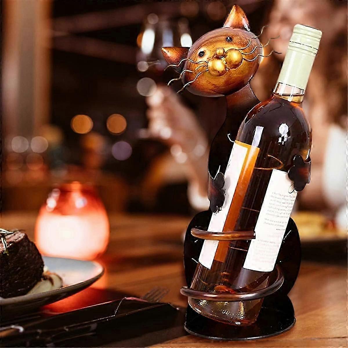 2pcs Cat Shaped Wine Holder Rack, Metal Decorative Cat Wine Bottle Holder Sculpture