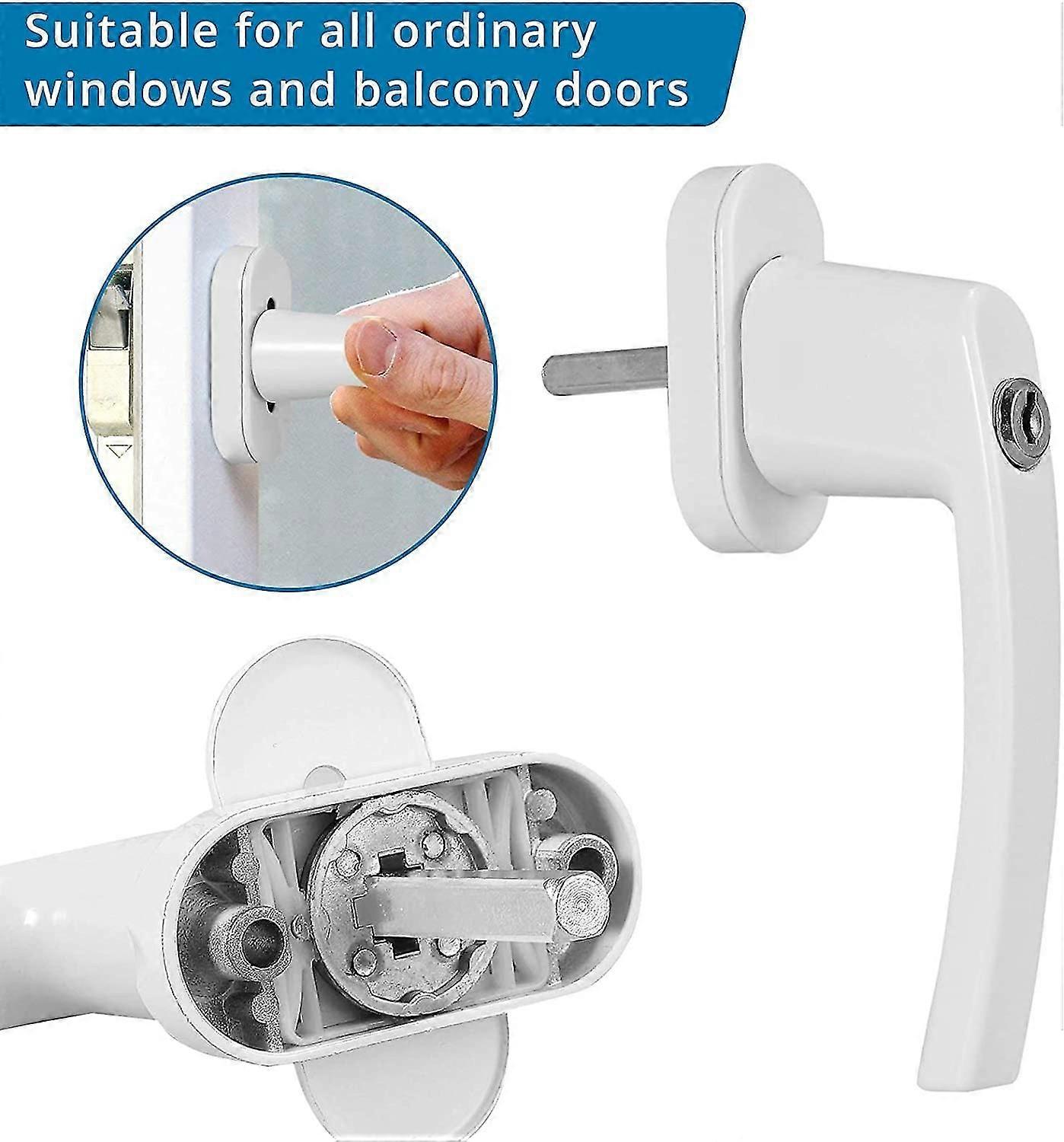 2pcs White Aluminum Keyed Lockable Window Handles With 4pcs Screws And 4pcs Keys
