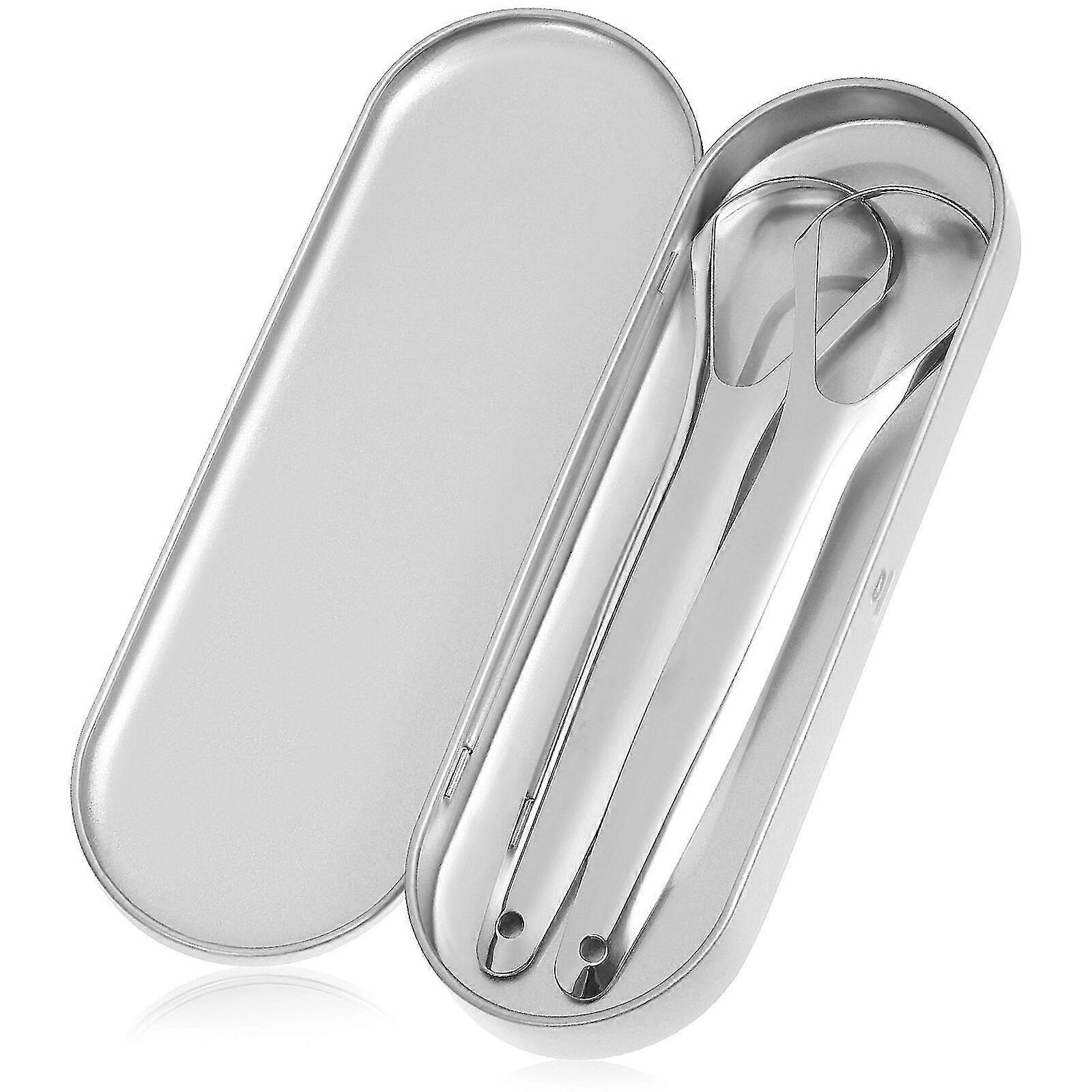 2 Pcs Tongue Scrapers Stainless Steel Tongue Cleaners Tongue Cleaning Scrapers With Storage Box For Adults And Kids