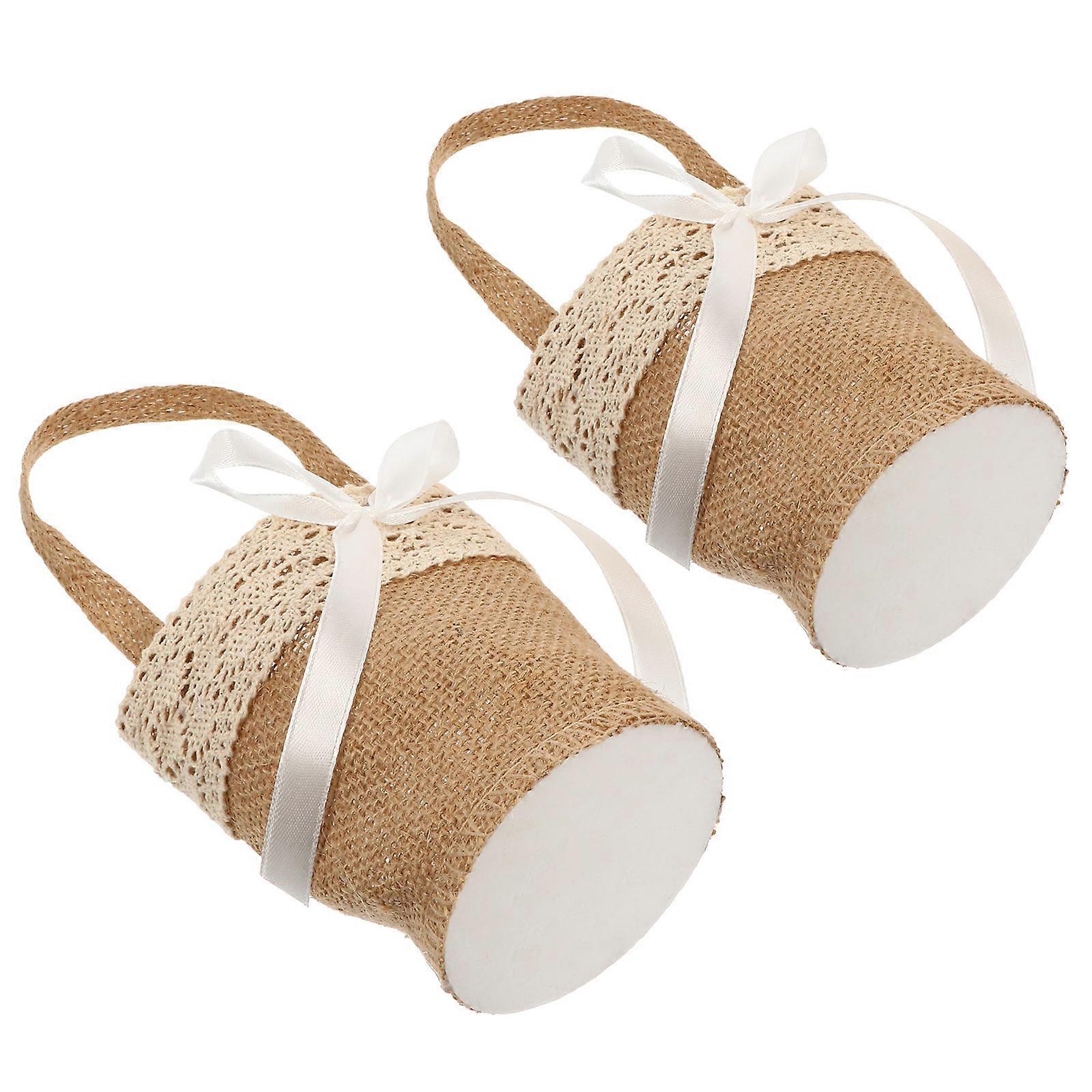 2pcs Floral Candy Storage Baskets Wedding Linen Bags Elegant Treat Holders