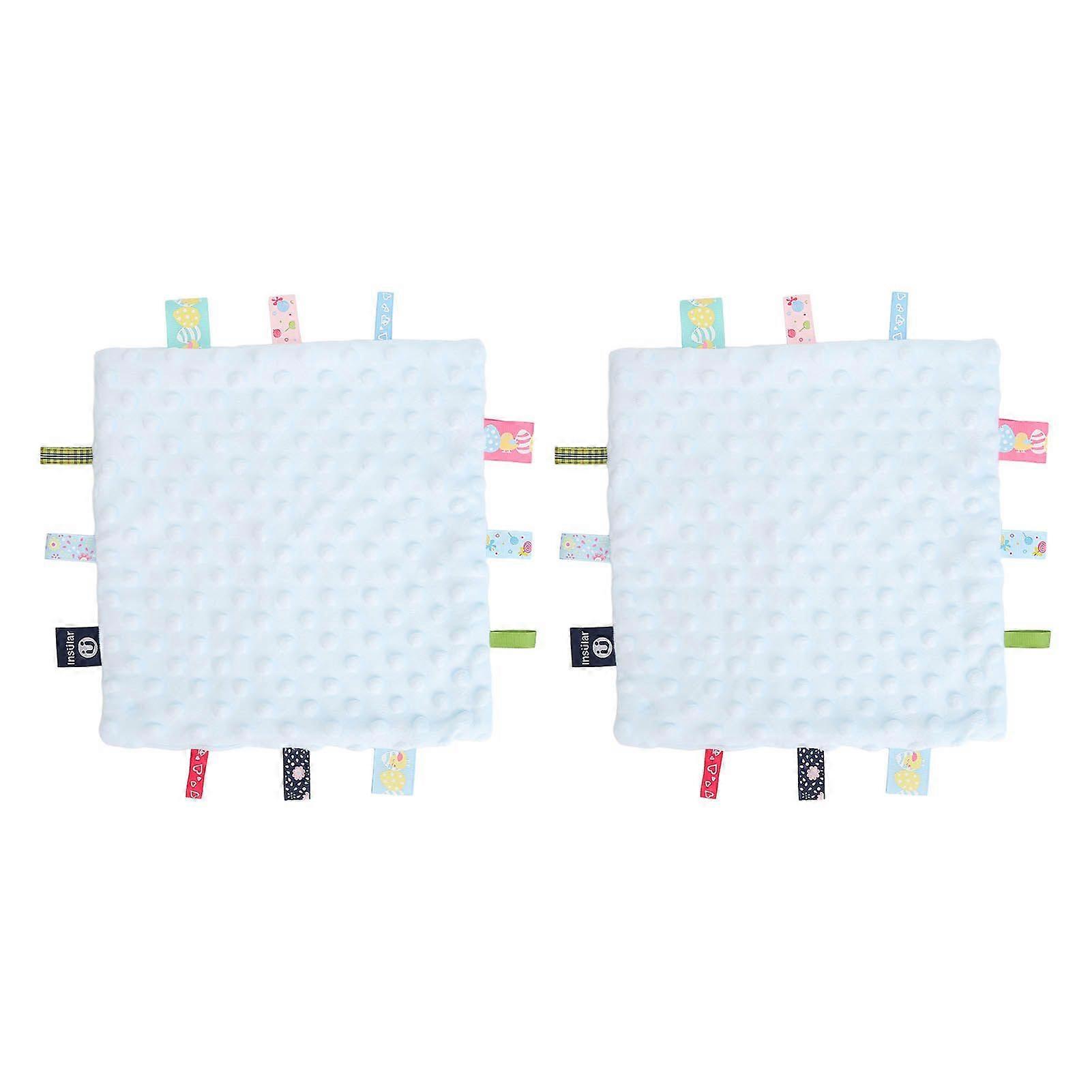 2pcs Baby Tags Security Blanket Pure Cotton 3D Particle Sensory Development Baby Comfort Blanket with Colorful Tags Blue