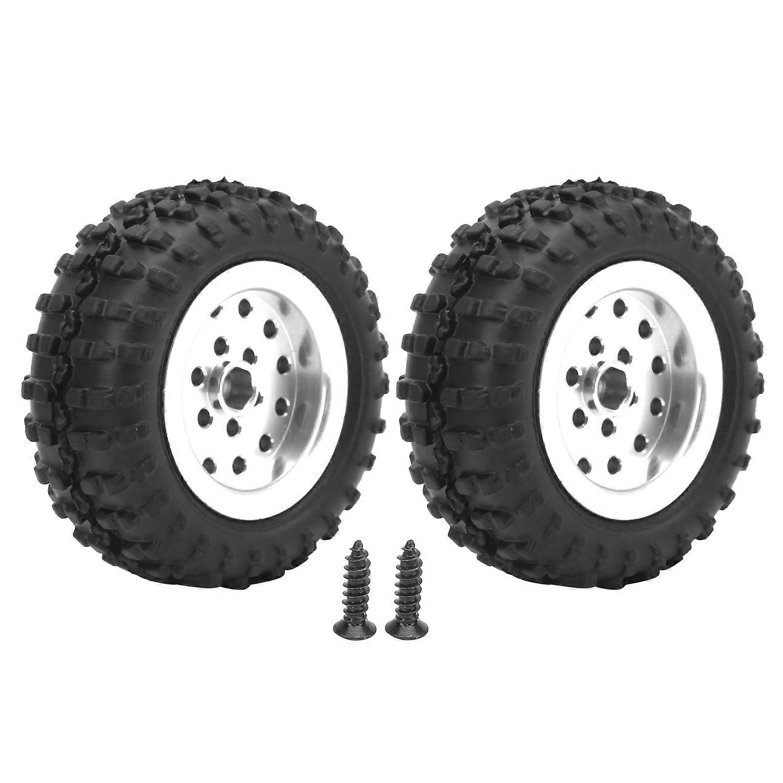 2Pcs Car Wheels Rubber Tire Aluminium Alloy AntiSkid 52mm Fit for WPL D12 1/10 RC Truck(Silver )