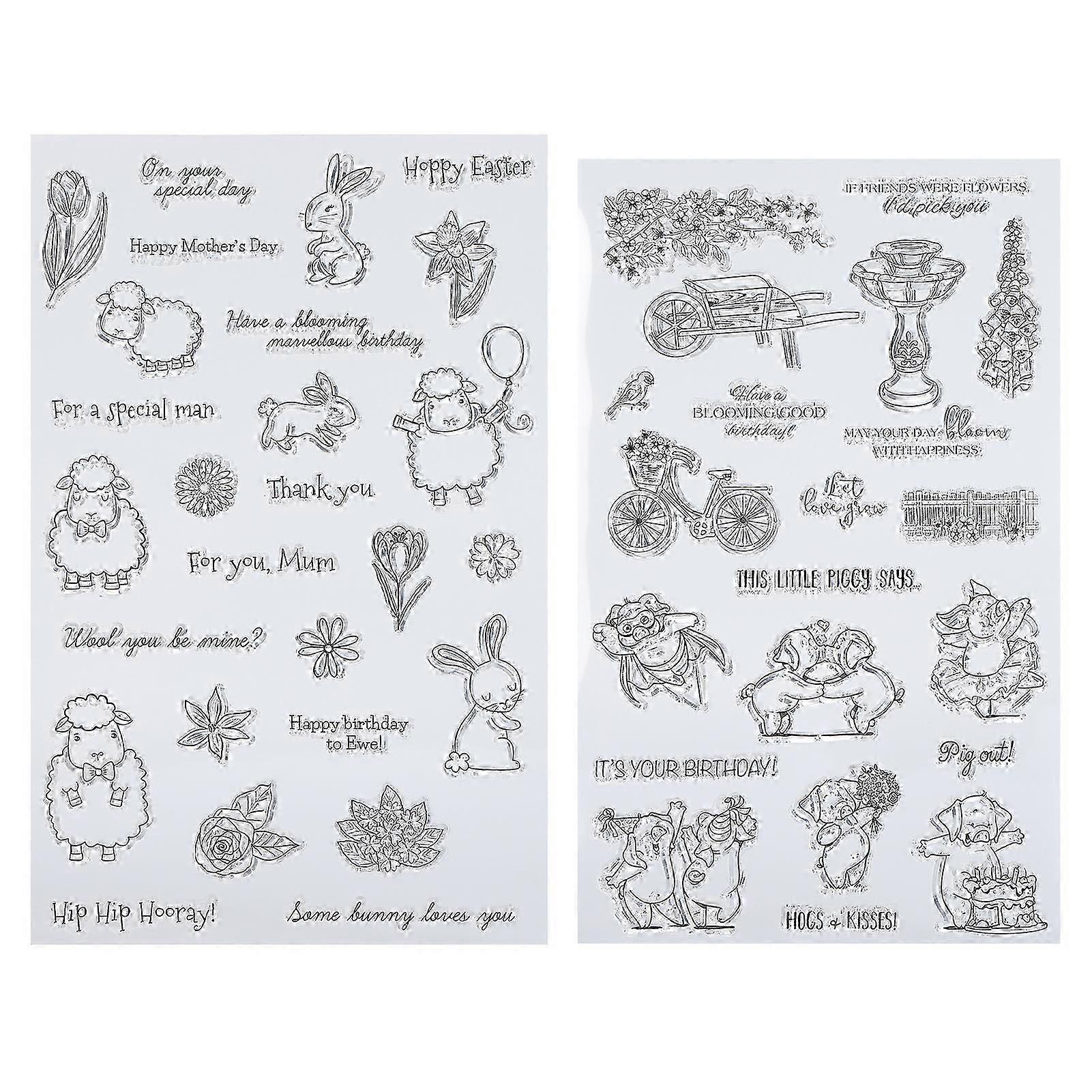 2Pcs Transparent Stamp TPR Seal Sheep Rbbit Pig Birthday for Card Making DIY Scrapbooking