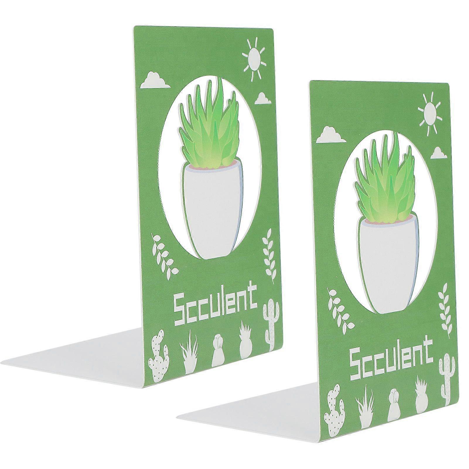 2Pcs Metal Bookend Nonskid Stable Book Stopper Supporting Shelves for Home OfficeSucculent