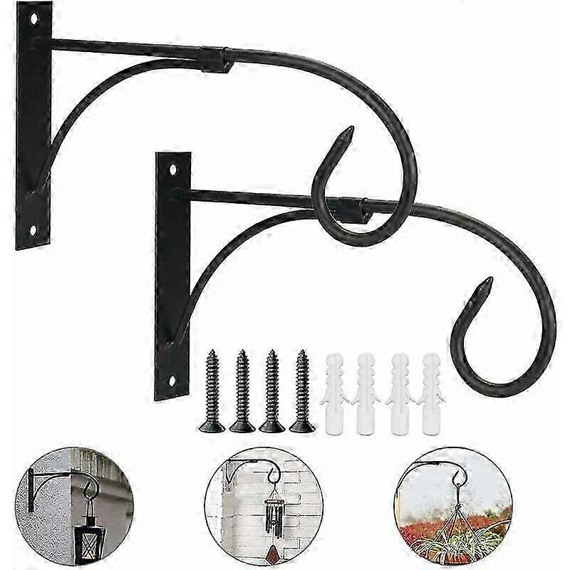 2 Pcs Wrought Iron Hanging Hook Anti-Rust Hanging Plant Bracket Screw-in Wall Hook with Expansion Tube Wall Plant Hook for Garden Bird Feeder Planter