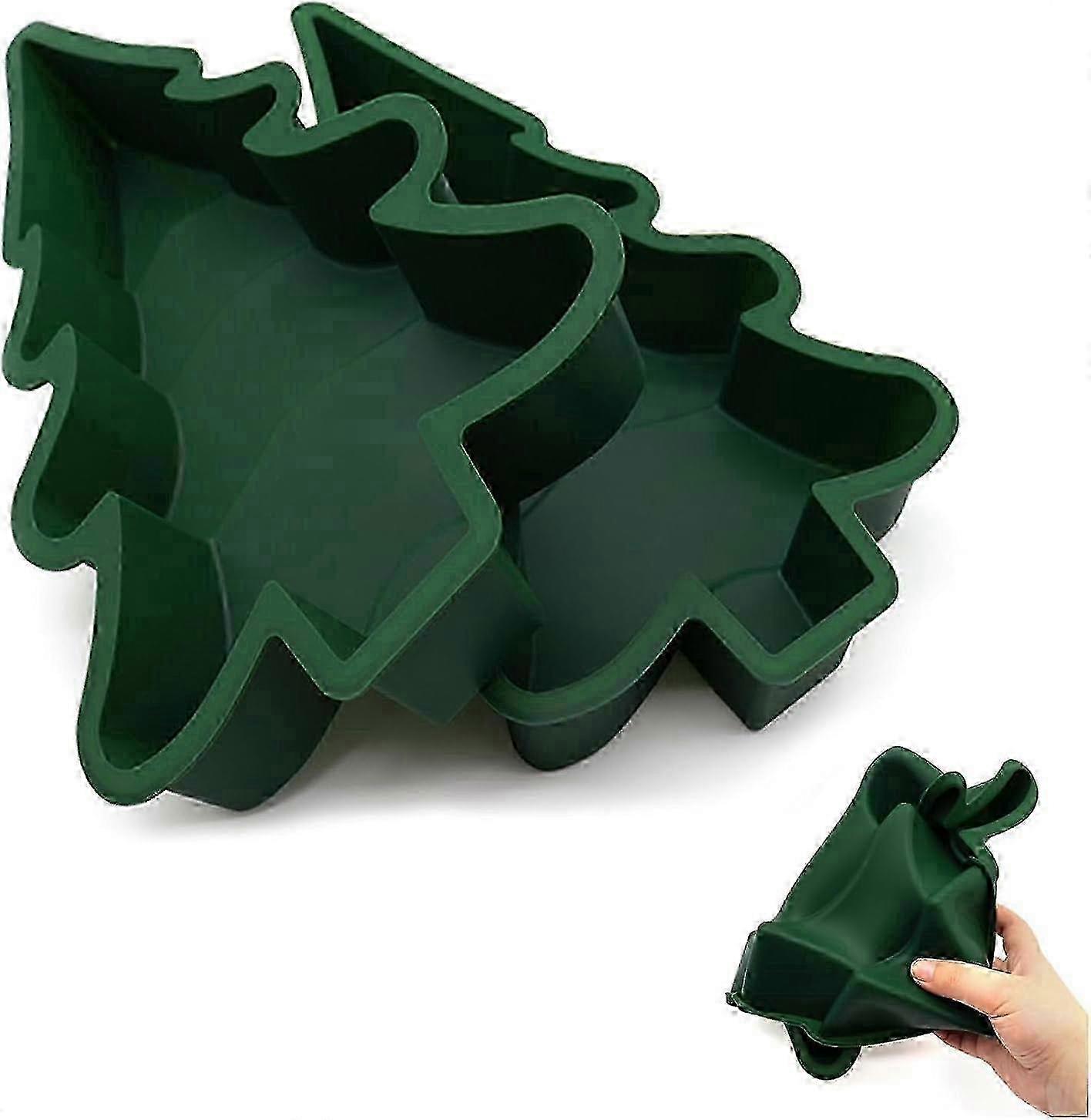 2pcs 3D Christmas Tree Baking Molds, Non-Stick Silicone Cake Pan, Candy Mould Tray for Xmas Bakeware