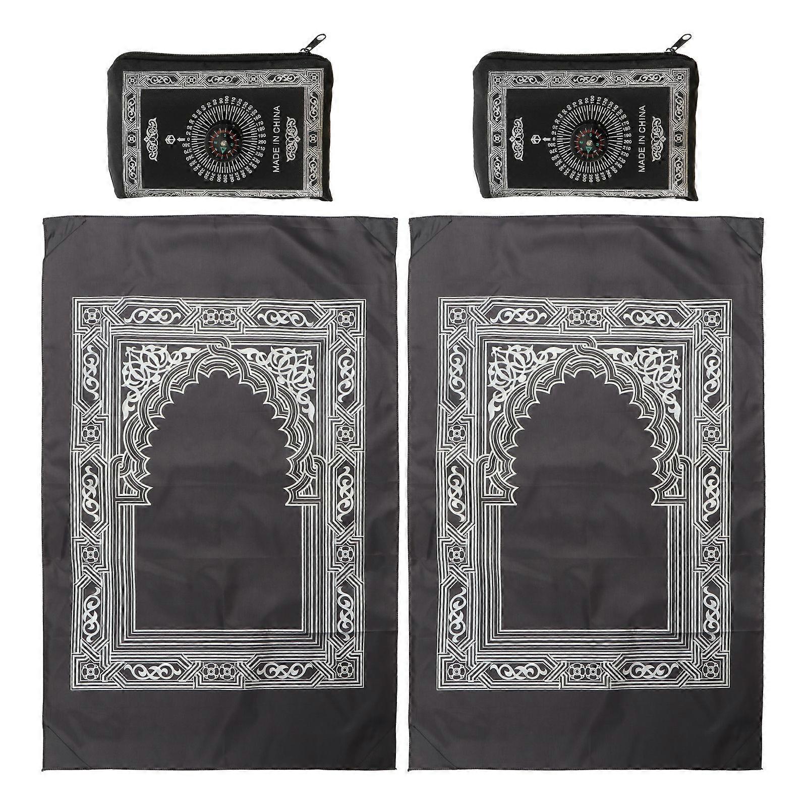 2Pcs Islamic Muslim Rug Travel Prayer Mat with Compass and Carrying Storage Bag
