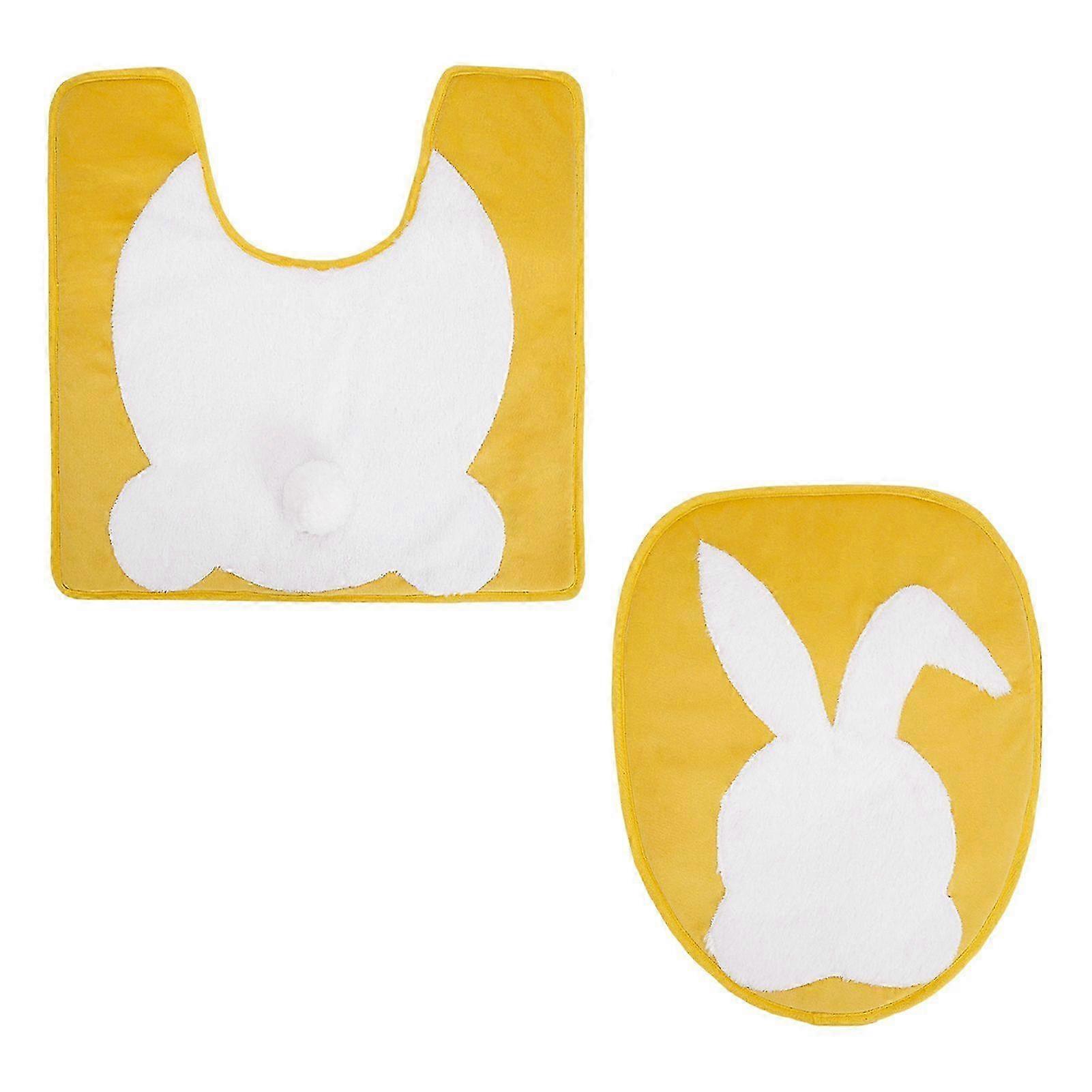 2Pcs Easter Bunny Bathroom Mat Set, Quick Dry Non-Slip Toilet Rug, Washable - Yellow